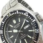 This Citizen Crystron diver watch is a sleek and reliable timepiece with a bold black dial and crisp day-date display. The 150M water resistance makes it perfect for everyday wear or aquatic adventures. Its quartz movement ensures accurate timekeeping, while the sturdy design gives it a rugged yet stylish look. A great choice for anyone wanting a durable, functional watch with Japanese craftsmanship. Just be sure to check the photos for condition details before buying!