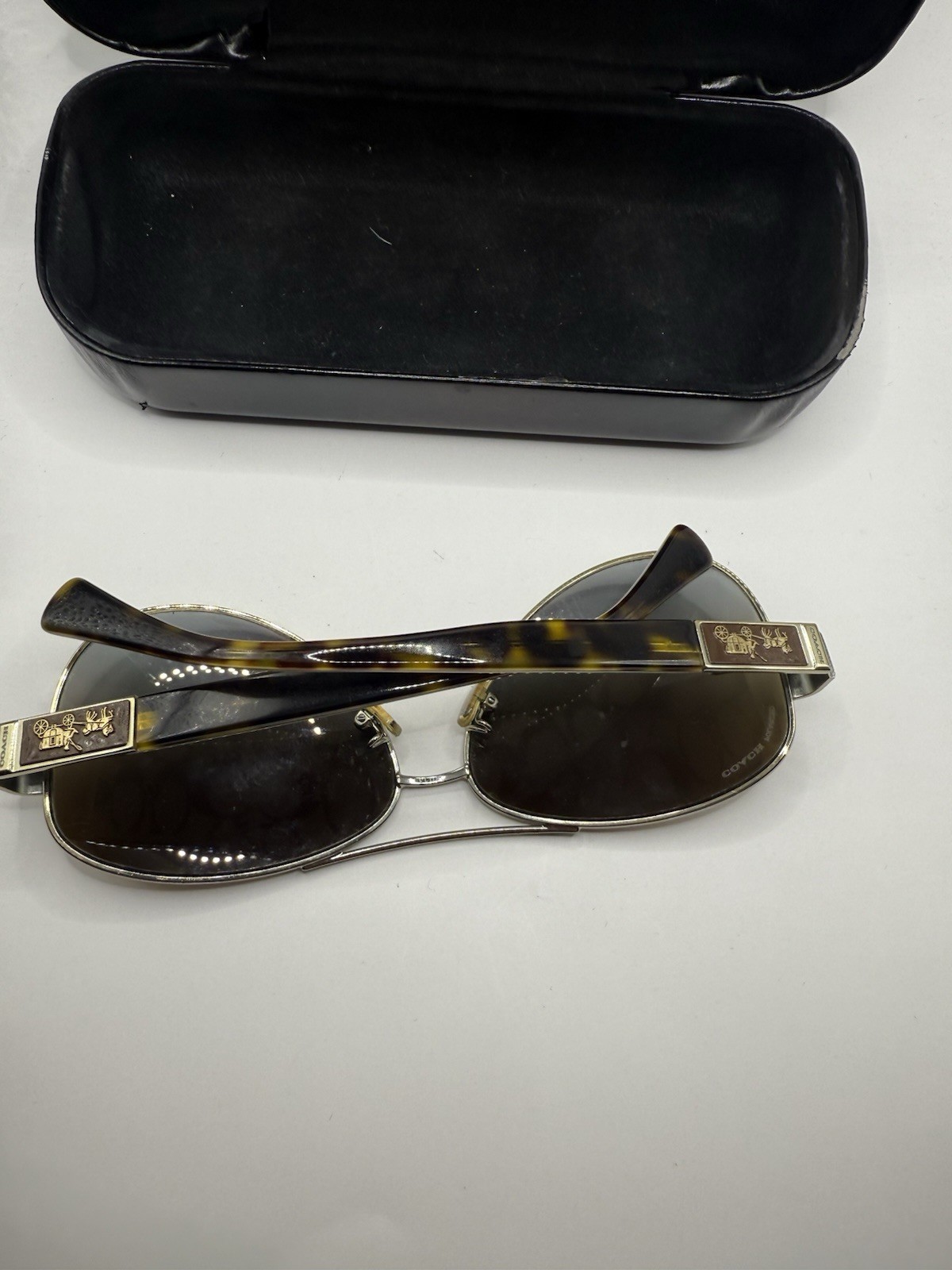 Awesome Style and color combination and in Great Condition. Prepare for the Sunny Days , feel confident and stylish **********OPEN FOR OFFERS********** Barely visible wear and tear marks, lenses are clean might have very light scuffs or scratches that don’t affect the wearing/vision at all Please check photos for details and condition. Consider photos as a part of the listing description MODEL HERE Coach Christina HC7047 7047 9202T5 Gold/Tortoise Pilot Polarized Sunglasses COACH AUTHENTIC CASE INCLUDED Lens Width ————59mm Bridge width ———-13mm Temple lenght ——-135mm Color Variations: We take photos under indoor lighting, so the background lighting might show some reflection that might looks like scratch or damage, please don’t hesitate to contact me if you need more photos for clarification before placing an order. If you are in need of expedited shipping Contact me before placing the order to arrange and timely fulfill your request Thank you for your consideration ! Feel free to visit other listings . RETURNS are ACCEPTED but please verify measurements and condition above will work for you to save us both the efforts of returning and relisting - thanks! Orders must be shipped to buyer's confirmed eBay address. Please ensure your address is up to date and clearly entered during checkout before completing any order. Contact Us: Do not hesitate to contact us at any time before or after your purchase, we are committed to 100% customer satisfaction. 1. We do our best to reply to questions/comments as soon as possible, due to a high volume of incoming emails and time zone differences, we may not be able to send you an immediate reply 2. We strive for positive feedback on all transactions.If you feel that your experience with us was not positive please contact us so that we can resolve any problems!