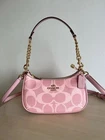 Description COACH CAL51 Pink Teri Shoulder Bag in Signature Canvas Crossbody brand new, never used! Part Number: CAL51 Size (inch) Length: 241.3 mm 9.5 inch Height: 152.4 mm 6.0 inch Width: 76.2 mm 3.0 inch 【Accessories】 ・Charm Overview Style Number: CAL51 (“Teri Shoulder Bag In Signature Canvas”) Material: Signature coated canvas + fabric lining Handle/Strap Specifications: Detachable handle (drop 8.5“) + detachable shoulder strap (drop 22.75”), allowing use as a shoulder bag or crossbody bag. Closure: Zip-top closure Includes a multi-function pocket inside. You can order in bulk with other products,and price negotiation ispossible. We also purchase many other rare andlimited items. Pleasefeel free to contact us.