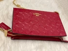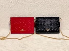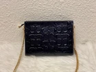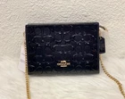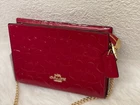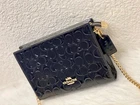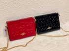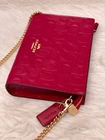 100% Authentic Buy With Confidence!! Coach Slim Crossbody In Signature Leather Brand new with tags Available 2 Colors Gold/ Black Gold/ Red Comparable Value: $250 Style Number CV407 Measurements Length: 7.75" Height: 5.5" Width: 1.25" Materials Signature patent leather Fabric lining Strap Chain strap with 22.50" drop for shoulder or crossbody wear Features Two credit card slots Zip-top closure