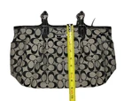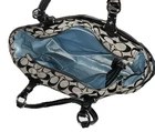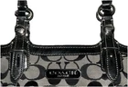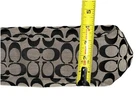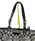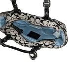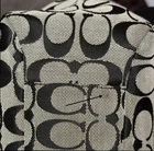 This beautiful COACH Signature C Black & Gray pleated bag is the perfect addition to any woman’s wardrobe. The canvas exterior boasts the classic Coach C design with black leather double handles and trim. The tote/bag is spacious enough to hold all your essentials while being light weight & easy to carry. This bag is in very good pre-owned condition. It is clean with no rips or flaws. There are small, normal signs of wear on the bottom corners and top leather trim. There is one small mark on the front, one on the bottom and several on the lining. Finally, the back slip pocket sags slightly. The hardware shines with no scratches. The zippers work smoothly and stay secure. This classic Coach design features: - a rectangular rounded shape, 14”x9”x4”, with pleats under the front handles - zipper top closure & silver buckle-like accents and rings on the strap - double leather handles/straps - Coach medallion between front strap anchors - exterior back full length slip pocket and side slip pockets - roomy light blue fabric lined interior - interior back wall zipper pocket & front wall slip pockets (2) This stylish Coach bag’s quality craftsmanship and high quality materials means it is made to last and retain its beautiful appearance. It is a perfect choice for everyday use as well travel, workwear, business meetings and casual get-togethers. Please see the photos for more details. New (non-Coach) dust bag included.