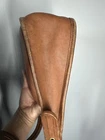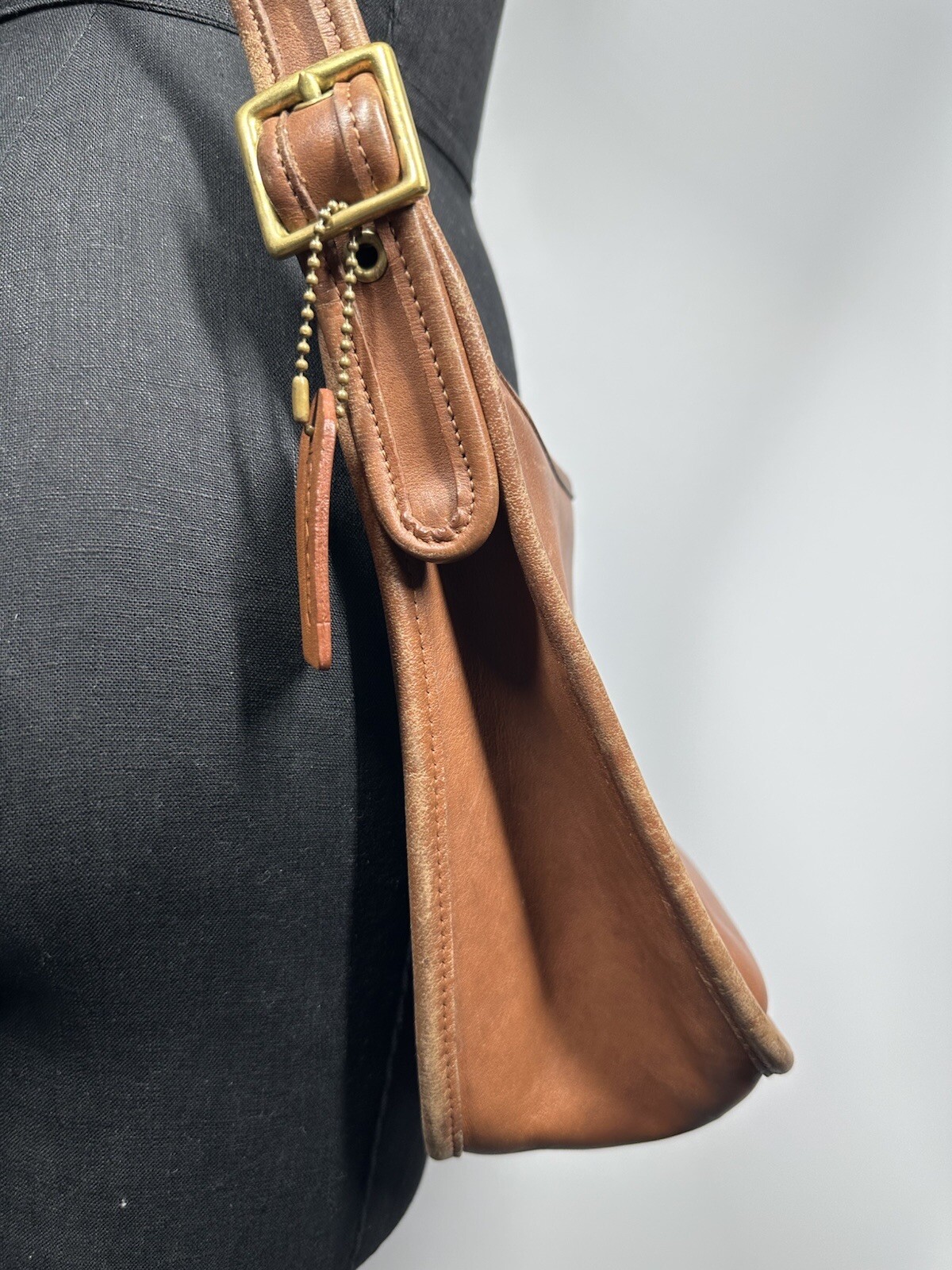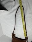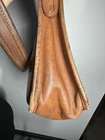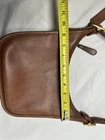 The COACH Vintage LEGACY ZIP British Tan Leather Purse Bag Crossbody is a stylish and versatile accessory for women. Made in the United States, this square-shaped shoulder bag features a zip closure and adjustable brown leather strap. The gold hardware accents, buckle detail, and solid brown exterior give it a classic and timeless look perfect for travel, casual outings, or business occasions. With a vintage charm and a nod to American heritage, this Coach purse is a must-have addition to any wardrobe.