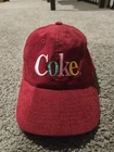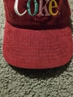 This is a Coca-Cola branded corduroy baseball cap in maroon color. It features an adjustable fitting with a metal buckle, corduroy ribbed texture, and embroidered Coca-Cola logo. Made of 100% cotton, it is hand washable and breathable. The cap is designed in a retro style and suitable for both men and women. It showcases pride colors and is perfect for festivals and showing off the Coca-Cola brand.
