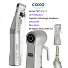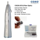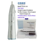 COXO Implant Surgical Motor 20:1 Handpiece Contra Angle Fiber Optic LED C Sailor Pro NSK Models to choose: COXO C Sailor Pro Implant Motor CX235C6-22 Implant Contra Angle 202CAR20B Implant Contra Angle 202CAR20KB Implant Contra Angle Intramatic Implant Head for 202CAR20KB C Sailor Pro Implant Motor System Original COXO Implant Motor System C Sailor Pro with 20:1 Fiber Optic Contra Angle Features 1. Full touch big screen The large size screen ensures that the treatment parameters are visible at any time. 2. Graphical planting process selection, a variety of parameters at a glance. Every planting process is set up to solve the tedious setting 3. ad hoc separate irrigation procedures for ease of use Cooling and flushing of inner and outer channel 4. Built in water supply system with small size, good performance and convenient connection. 4 shifts water supply up to 150ml/min 5. a new generation of motors with torque of up to 80N.cm High performance brushless motor, powerful torque output, highly efficient chip structure. 6. Motors and cables can be sterilized at high temperature and pressure Lighter and shorter motor, long work no fatigue 7. LED lighting helps clinicians focus more on the treatment area and make surgery more accurate High brightness LED light source with brightness up to 30000lux 8. Illumination and sound can be adjusted Give doctors more autonomy in setting up options 9. Multifunctional pedal controller Aseptic operation can be achieved, giving the maximum freedom of the handle The handle can be easily connected to the pedal controller Technical: Maximum power: 150W Power supply: AC230V 50/60Hz Motor speed: 300--4000Orpm Adjustable torque: 5Ncm--80Ncm Water supply volume: 4 blocks adjustable. 150ml/min Light source illumination: 3000O lux Motor: surgical brushless motor Volume(cm): 42x38x26cm Weight(kg)/PCS: 5.5kg Packing: Aluminum box Package includes: Main unit Foot Control Pedal with Handle Surgical Motor with cable AC Electrical Cord Stand Handpiece Stand Spare Fuse Tube Holder Irrigation Tubing Set CX235C6-22 implant contra angle (20:1 reduction) Features: Made by COXO, with COXO's NEW logo "YUSENDENT" 20:1 Contra Angle Fiber Optic Implant Surgical Handpiece For Implant motors Similar with NSK surgical handpiece NSK X-DSG20L ISO E Type, fits for ISO E-type Implant motors (NSK, KAVO, NSK and etc.) Descriptions: Fiber optic lighting system, more clear vision Disassembling: Contra-angle can be disassembled with a simple twist for easy internal cleaning, no risk of cross-infection. However, when attached to a motor, it will not disassemble accidentally due to the unique locking mechanism Double Sealing System: Double sealing system reliably prevents blood and bodily fluids from entering the instrument head. This guarantees longevity of the contra angle. Push Button Chuck: Push Button Chuck is push button auto-chuck mechanism that tensions the bur grip during rotation. It allows one-touch bur insertion and removal without tools. The bur lock mechanism is designed so that bur retention strength increases when high loads are applied to the bur. Oil injection can directly reach gears and bearings, and the maintenance effect is good. Extend the life of the gear. The new gear system design, high-tech wear-resistant coating Technical Specification: Low speed handpiece: 20:1 Reduction Max speed: 2, 000RPM Max Torque 80 Ncm Chuck type: push button Spray: Inner channel and external Bur applicable: Ø2.35mm (ISO1797-1) Internal cooling system: Kirschner/Meyer BEING Rose 202CAR20B Implant Contra Angle (20:1 reduction) Features: BEING Brand, top quality 20:1 Contra Angle Rose 202CAR20B: Fiber Optic Implant Surgical Handpiece For dental implant motor ISO E type, fit ISO E type dental implant motor (W/H KAVO NSK COXO ect.) Technical: Internal Cooling System, with external pipe spray Single water spray Max rotation speed: 2,000rpm (With micromotor by max speed: 40,000rpm) Bur applicable: 2.334-2.35mm BEING Rose 202CAR20KB implant Contra Angle (20:1 reduction) Features: Original BEING, top quality 20:1 Contra Angle Fiber optic Implant Surgical Handpiece For dental implant motor Similar with KaVo SURGmatic S201XL Removable Head fits for Original KAVO SURGmatic S201XL External water channel ISO E type, fit ISO E type dental implant motor W&H KAVO NSK COXO ect. Descriptions: Removable head, easy to clean Better grip and hygiene Small head with internal cooling system External cooling with coolant connector on the head Technical Specifications: Speed: 15-2000 rpm Maximum torque: 55 Ncm Intramatic Head for 202CAR20KB BEING brand KaVo INTRA LUX style Spare head for KaVo SURGmatic S201XL Push button Better grip and hygiene External cooling with coolant connector on the head COXO CX235-2CS Straight Surgical Handpiece (1:1) An ergonomic, hardy surgical handpiece with double click bur locking to ensure a secure fit. External water pipe with dual spray outlet integrated into the head. Ideal for Implant Surgery, Micro Surgery, & Bone Surgery. Features: Made by COXO, with COXO's new logo "YUSENDENT" 1:1 Direct Drive Straight Handpiece Implant Surgical Handpiece CX235-2CS: Fiber Optic External Water Channel ISO E Type, fits for ISO E type implant motors (NSK, KaVo, Sirona, W&H, Bien-Air and ect.) Similar to NSK X-SG65L Specifications: Max Speed 40,000 R.P.M Bur Shank: Ø2.35mm Bur Length: Standard 44.5mm Autoclavable to 134°C BEING Rose 202SHBW Straight Surgical Handpiece (1:1) Features: BEING Brand, top quality 1:1 direct drive Straight Handpiece Rose 202SHW: Non Fiber Optic Rose 202SHBW: Fiber Optic For Surgical Implant Internal Cooling System, with external pipe spray ISO E Type, fits for ISO E type implant motors (NSK, KaVo, Sirona, W&H, Bien-Air and ect.) Similar to KaVo SURGmatic S11L Specifications: Rotation Speed: 20,000-25,000 rpm Bur Applicable: Φ2.334-2.355m Air Pressure: 245-392Kpa (2.5-4.0 kgf/cm²) Water Pressure: 198Kpa (2kg) FDA Statement The sale of this item may be subject to regula