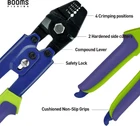 Make Leaders: This fishing leader crimping tool is perfect for making fishing leaders, such as fluorocarbon leaders and monofilament leaders, and it's a great addition to any angler's gear. Crimp Sleeve Pliers: Cup to cup type crimping for use with oval sleeves and double barrel sleeves. Crimping Sleeve: Handles mono and fluorocarbon from 50lb to 400lb test, while wire and cable from 100lb to 600lb test. Wire Cutters: Extremely easy to use and very strong, these crimp pliers will hold up to the toughest line up to 600lb. Total 140pcs crimp sleeves included, 2mm x 20pcs, 1.6mm x 30pcs, 1.2mm x 40pcs, 0.8mm x 50pcs Product Description CP1 HAND CRIMPER WITH BUILT-IN WIRE CUTTERS Booms Fishing Focus on Fishing Tools and Accessories ! We insist on making fishing easy ! Make you own heavy rigs for your needs by adding CP1 Hand Crimper to your tackle box, it allows you to easily cut the leader material and reliably crimp them. CRIMPING SLEEVE If you got tired of buying offshore leaders, it's amazing how simple it is to make your own Cup to cup type crimping for use with oval sleeves and double barrel sleeves Handles mono and fluorocarbon from 50lb. to 400lb. test, while wire and cable from 100lb. to 600lb. test WIRE CUTTERS Hardened wire cutters will cleanly cut mono,fluorocarbon and cable up to 600lb Made of hardened carbon steel with black oxidation surface, durable and saltwater resistance