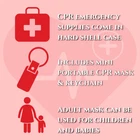 Introducing the ultimate CPR Mask Kit, a must-have for anyone concerned with safety and preparedness. Whether you're a professional responder, a restaurant manager, or a conscientious parent, this compact and comprehensive kit ensures you're ready to handle emergencies involving adults, children, and babies. The kit includes a high-quality CPR mask that provides a reliable barrier during resuscitation and is suitable for all age groups, including pediatric patients. A keychain portable mask, attached to a keyring, is perfect for travel and everyday carry, making it a lifesaver that fits right on your keychain. Disposable gloves ensure hygiene and personal protection, available in a compact holster, while an alcohol swab is essential for cleaning and disinfecting surfaces before use. Our CPR Mask Kit is designed with features that cater to a variety of settings, being compact and lightweight, making it easy to carry whether you place it in your car, attach it to your keychain, or carry it in a backpack. Made with high-quality materials, the CPR mask and other components are reusable and built to last. Its versatile application makes it ideal for use in restaurants, schools, and homes, as well as by EMTs, police, law enforcement, and even military personnel, making it a versatile choice. The CPR Mask Kit features a robust inlet for oxygen supply, a secure seal for effective ventilation, and a microshield for added protection. Whether you’re a professional rescuer, a parent, or just someone who likes to be prepared, our CPR Mask Kit is a practical and essential addition to your safety arsenal. The CPR Mask Kit is your go-to for emergency preparedness. Be ready, be safe, and breathe easy with our top-of-the-line CPR Mask Kit. CPR KIT ESSENTIALS ALL-IN-ONE: You never know when children, adult, or an infant will need emergency rescue. Our universal masks, shields, and other medical tools are perfect for the professional lifeguard, trainer, instructor, and everone else to be ready. CPR SHIELD BARRIER: Our CPR first-aid Kits includes the main one-way valve CPR mask. Minimize mouth-contact risk and use the CPR Mask as easy protective equipment. Includes hard case bag for clean carrying in fanny pack pouch. CPR POCKET MASK KEYCHAIN: Kit includes right-size mini portable plastic face shield keychain for anytime emergency preparedness. Keep this full tactical accessory on your keychain, in purse, or at home in case of emergency. DISPOSABLE GLOVES INCLUDED: Comes with gloves. When ever emergency happens, you'll be quick and ready to act for the newborn, child, or adult who needs help. This CPR kit is the perfect combo for anytime. ALCOHOL SWAB INCLUDED: Clean your equipment after breathing through with the included alcohol swab. Nice for cleaning the device after training sessions and practice.