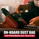 About this item 7.0 amp 3in. X 21in. Belt sander with an angled belt Design to sand closer to adjoining surfaces Max 800 FPM For fast material removal Tool-free belt release for quick and easy belt changes High performance dust collection featuring onboard dust bag 3position over molded handle improves comfort during use Compatible with the VERSATRACK Wall Organization System. Hook and accessories sold separately.