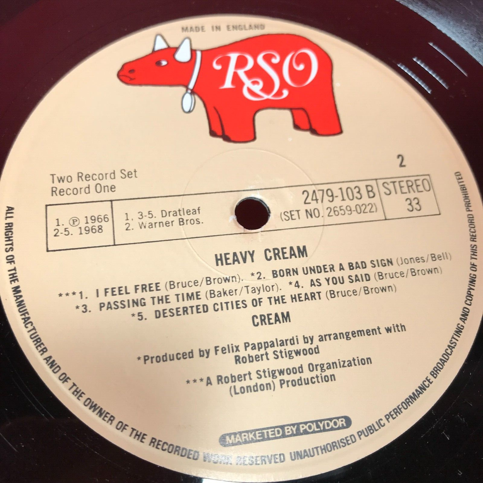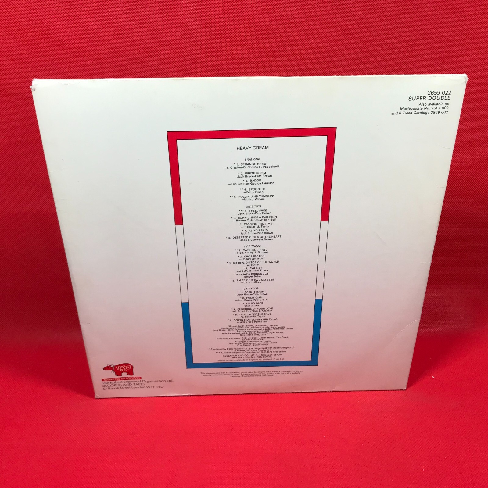 CREAM Heavy Cream - 1973 UK double compilation vinyl LP including Strange Brew, White Room, Badge, I Feel Free, Sunshine Of Your Love & many more. In a single pocket envelope style picture sleeve, complete with printed inners. 2659022 1. Strange Brew 2. White Room 3. Badge 4. Spoonful 5. Rollin' & Tumblin' 6. I Feel Free 7. Born Under A Bad Sign 8. Passing The Time 9. As You Said 10. Deserted Cities Of The Heart 11. Cat's Squirrel 12. Crossroads 13. Sitting On Top Of The World 14. SWLABR 15. What A Bringdown 16. Tales Of Brave Ulysses 17. Take It Back 18. Politician 19. I'm So Glad 20. Sunshine Of Your Love 21. Those Were The Days 22. Doing That Scrapyard Thing Record Condition : Excellent Sleeve : Minor shelfwear (see photo) Please check out our other items !