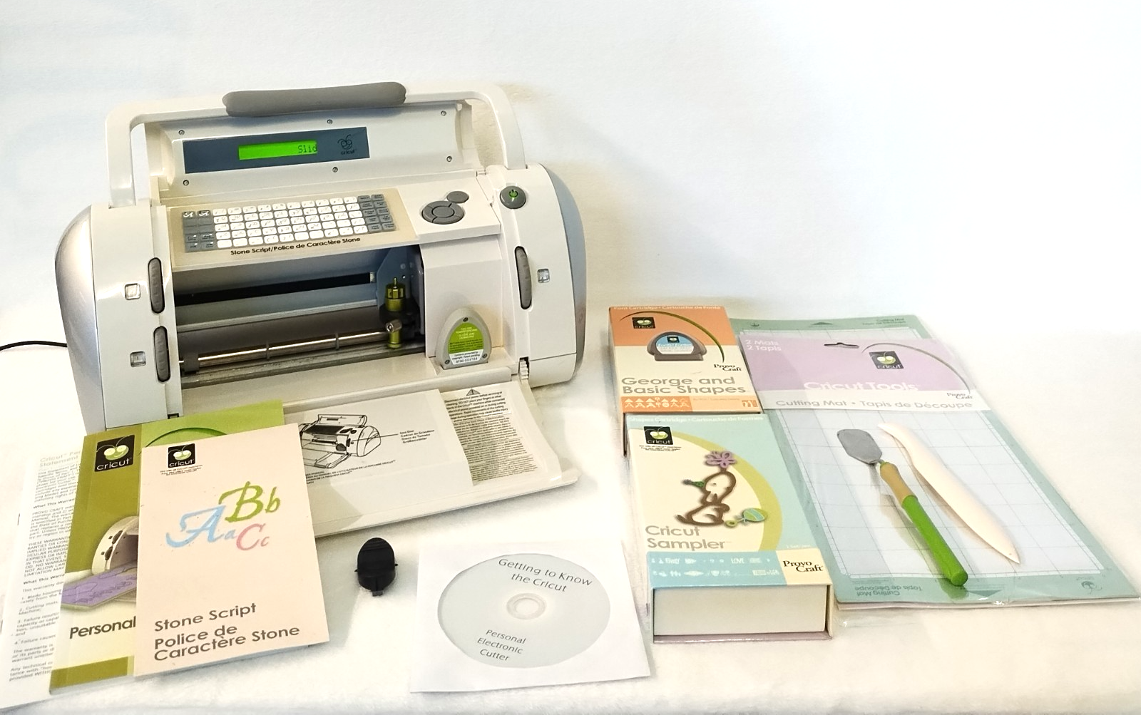 The Cricut CRV001 Cutting Machine Bundle includes a George/Shapes Sampler Cartridge, Mat, and tools. This die-cutting machine features both manual and electronic capabilities, making it versatile for various crafting projects. With its letterpress feature, users can create intricate designs with ease. Whether for scrapbooking or paper crafts, this bundle provides everything needed to add a personalized touch to your creations.