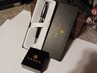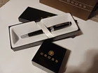 CROSS BLACK AND POLISHED CHROME FOUNTAIN PEN MEDIUM NIB $80 GIFT BRAND NEW IN CROSS GIFT BOX