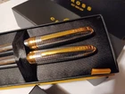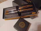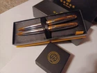V E R Y R A R E HARD TO FIND DISCONTINUED Cross Medalist 23kt gold and Diamond Cut Polished Chrome Styler Ballpoint Pen and 0.7mm Pencil set $110 BRAND NEW IN CROSS GIFT BOX