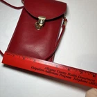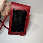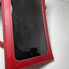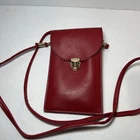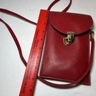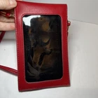 This is a Bordeaux Red crossbody bag with a SEE-through back panel in Red. It features a black lining and is made of faux leather. The design is sleek and modern, perfect for women looking for a stylish and functional accessory. Holds an extra large cellphone