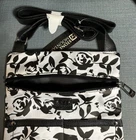 "STONE MOUNTAIN" CROSS BODY BAG PRETTY ROSE FLORAL DESIGN! NEW WITH TAGS! SIZE: 11" H X 9" W X 3 " D VERY NICE "STONE MOUNTAIN" NYLON CROSS BODY BAG FEATURING A COOL BLACK ON WHITE ROSE DESIGN. LONG BLACK PATENT LEATHER ADJUSTABLE STRAPS WITH BLACK NYLON INTERIOR LINING. FRONT FEATURES A NICE BIG ZIPPER POCKET WITH TWO NICE SIZED SLIP POCKETS AS WELL. THE BACK HAS A HUGE SLIP POCKET! GREAT CROSS BODY BAG TO HOLD YOUR ESSENTIALS. EASY TO WIPE CLEAN. JUST CLEARING OUT MY CLOSET! THANKS FOR LOOKING!