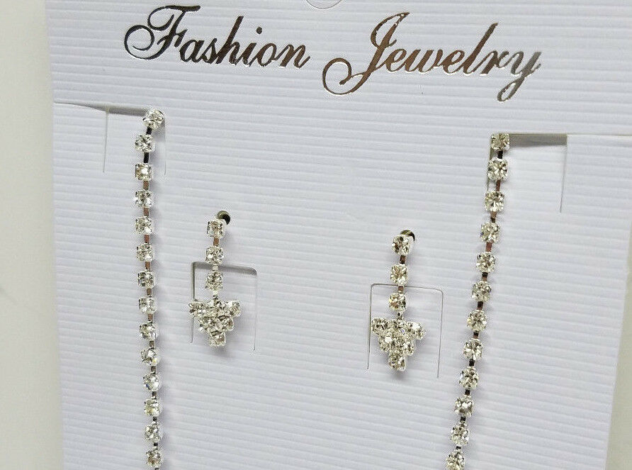 BRAND NEW WOMEN'S FASHION JEWELRY SET. Beautifully Designed Silver Necklace & Stud Earrings laced with Sparkling Rhinestone Crystals. Necklace adjustable 16''-18'' with Lobster Clasp. Great for that special occasion - Wedding, Bridal, Prom, Sweet 16, Parties, etc. Nice Quality Item / Well Crafted / GREAT Price Please check my auctions for more Fashion Jewelry. Super low prices - make great gifts. PLEASE TAKE A MOMENT TO VIEW OUR OTHER LISTINGS AND VISIT OUR STORE FOR A LARGE SELECTION OF ADDITIONAL ITEMS ALWAYS FEEL FREE TO CONTACT US WITH ANY QUESTIONS YOU MAY HAVE Item will ship by USPS First Class Mail w/ tracking #. >>USA SELLER<<  with fast same day shipping (Monday - Saturday) if paid by 5pm Eastern Time. We combine shipping for multiple purchases. Buyer is charged shipping on the item with the highest shipping cost, all additional items ship for free. If shipping outside the USA, buyer must use the "eBay Global Shipping Program".