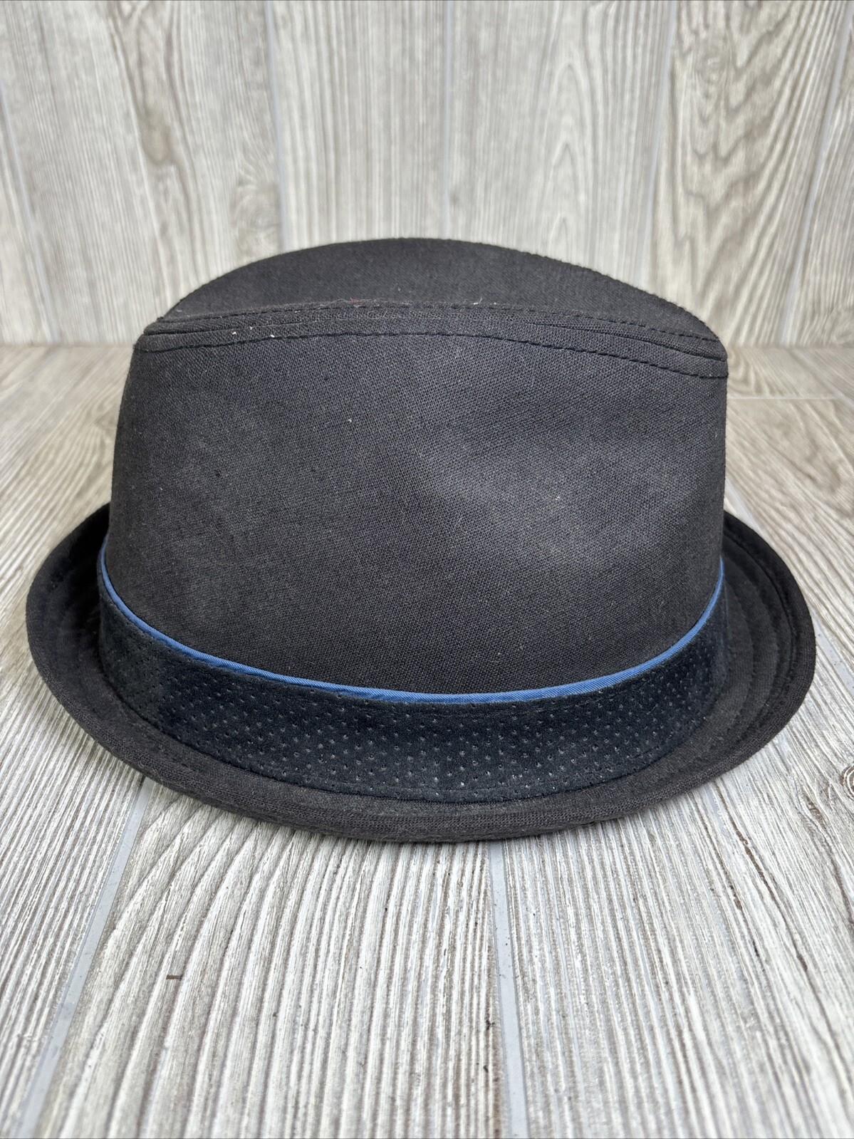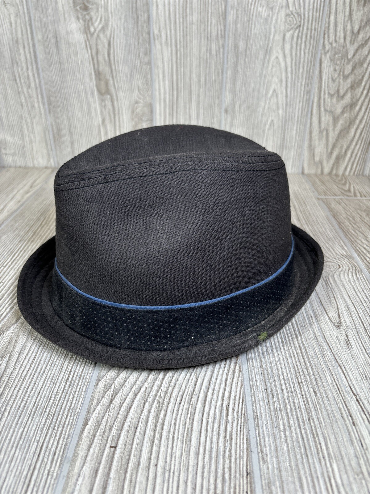 Hat has a tear along the side brim. Other than that it is in good condition. Please refer to pictures.