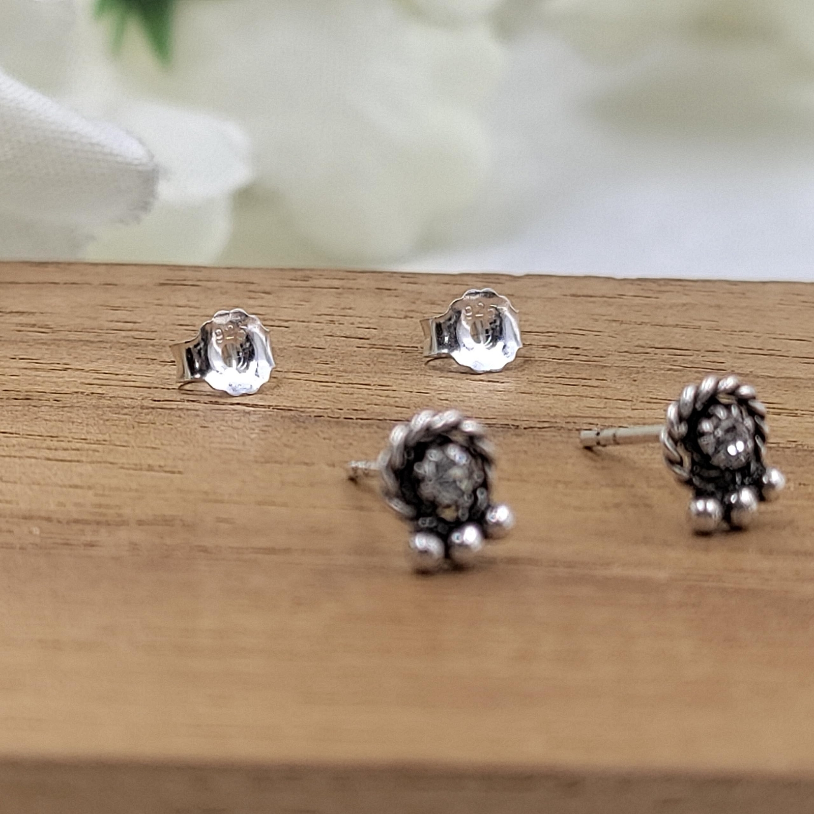 CZ Round Silver Oxidised Studs Art Jewelry Solid 925 Sterling Gift for Baby Girls