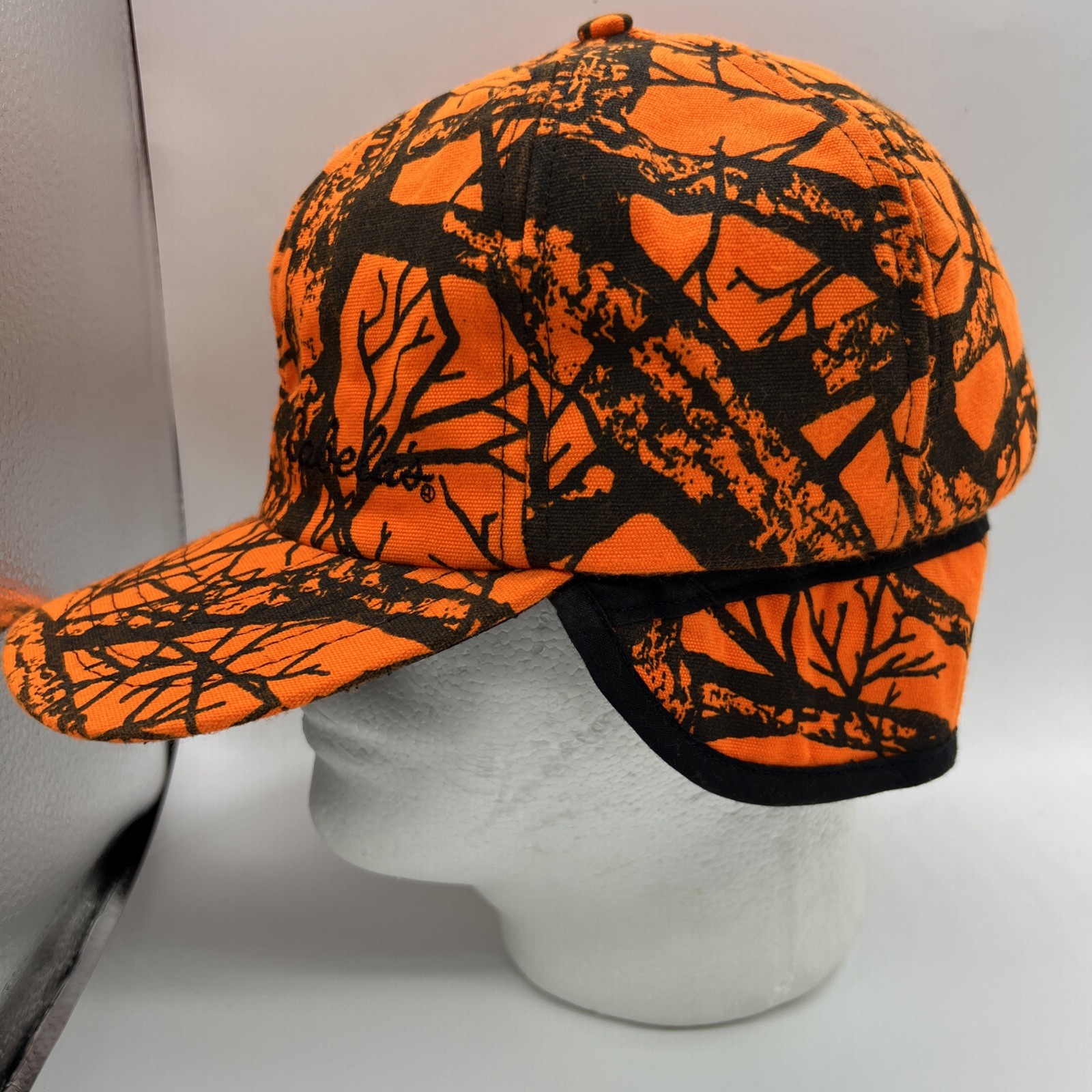 Preowned good condition without any rips or tears, it has 40gms of insulation, there is a visible sweat stain that can be hand washed with mild detergent. The Cabelas Gore-Tex Orange Camoflauge Hunting Trapper Hat is a vintage-inspired accessory designed for men who enjoy hunting. Made with softshell fabric and featuring Thinsulate insulation, this hat is perfect for cold weather conditions. The blaze orange color and camouflage pattern make it both functional and stylish, while the insulated design adds extra warmth during outdoor adventures. Proudly made in the United States, this Cabelas hat is a must-have for any hunting enthusiast.
