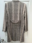 Cabi King Cobra Blazer Coat Women’s Size 2XL Snake Print 4114 Tan/Black This is a fabulous Carol Anderson long duster blazer in a snake print that looks divine over black or brown pants. Excellent condition. Five button front, side pockets and a half belt and back for style and shape. Back also has a nice pleat detail Sleeves have a three button style. Thin shoulder pads help keep a flattering upper body shape and fit. This is offered in a hard to find women’s 2XL. Cabi is a direct-sales women’s fashion brand specializing in workwear and weekend wear that operates via home-hosted parties in United States, Canada, and United Kingdom. Ships from the Midwest