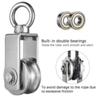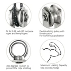 Cable Pulley Wheel for Rope with Ball Bearing, Smooth No Noise, 360° Swivel Small Wire Pulley for Pulley System Lifting, DIY Home Gym, Winch, 2 Pack Double Bearing Design: The pulley is equipped with two 608 bearings, which greatly reduces the friction force, and makes the pulley rotate more smoothly, quietly without jamming Material: The pulley is composed of 304 and 201 stainless steel material, which is strong and durable. It has absolute anti-rust ability indoors. 201 stainless steel cannot be used outdoors for a long time 360 Degree Rotation: The 360 degree rotation top ring helps to prevent rope, cable or wire from knotting, and provide convenient use for ease wire handling Max Loading Capacity: 551 pounds / 250 kg; Safe Loading Capacity: 137 pounds / 62 kg; Max Ropes: 0.314 inches / 8mm wide Number of Item: 2 pcs Pulley Shipping We offer FREE shipping on all orders! We ship within Three business days of payment, usually sooner. We use a selection of shipping services such as UPS, FedEx, USPS etc. We only ship to the lower 48 states, no APO/FPO addresses or PO Boxes allowed. Local pickups and combined shipping options are not provided at this time. Return You can return a product for up to 30 days from the date you purchased it. Any product you return must be in the same condition you received it and in the original packaging. Please keep the receipt. Payment We accept payment by any of the following methods: PayPal Please pay as soon as possible after winning an auction, as that will allow us to post your item to you sooner! Feedback Customer satisfaction is very important to us. If you have any problem with your order, please contact us and we will do our best to make you satisfied. Contact Us If you have any queries, please contact us via ebay. We usually respond within 24 hours on weekdays. Please visit our eBay store to check out other items for sale! Thank you for shopping at our store.