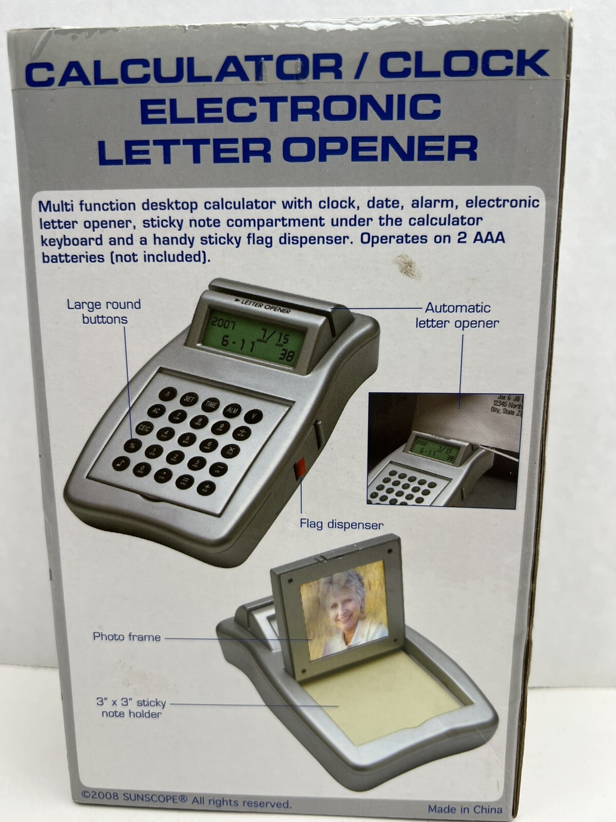 Calculator/Clock/Electronic Letter Opener Battery Powered New