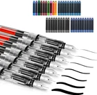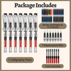 Versatile Set: Calligraphy pen set contains 7 fountain pens with different nib widths (0.5 mm, 0.7 mm, 1.1 mm, 1.5 mm, 1.9 mm, 2.5 mm, 2.9 mm) and 40 ink cartridges in 13 colours, fit for various font styles and meets your writing and drawing needs Two Ways To Refill Ink: Equipped with 6 ink converters, rotate the pen's plunger converter to extract your preferred ink. The portable ink cartridges can be used on the go to have an instant ink supply Comfortable Use: Robust, durable stainless-steel nibs for even ink flow and smooth writing. Ergonomic grip area with triangular, streamlined design prevents finger slippage and provides an easy and comfortable grip Transparent Design: Viewing window on the pen barrel makes it possible to see the ink volume at all times to ensure that there is enough ink during use Multifunction: Fountain pen set combines the functions of writing, calligraphy and drawing. Ideal for calligraphy beginners, suitable for children and adults. A perfect set for writer and artist for daily writing, calligraphy, hand drawing and illustrating Product Description Calligraphy Set, 7 Calligraphy Pens with Different Nibs and 40 Ink Cartridges in 13 Colours, Calligraphy Set Beginners Refill the ink with 2 methods Piston Converter: Twist the piston converter in 3 pens to withdraw and repel ink.Ink Cartridges: A portable ink replacement for your instant ink supply. Mixed ink colors for your choices. Package includes: 7 calligraphy pens with different nibs; 40 ink cartridges In 13 colours; 7 ink converter A Sophisticated Set The calligraphy pen set is a great choice for writing, drawing, and calligraphy lovers.Also a charming gift for your loved ones and the perfect present for your friends on Christmas, holidays, and festivals.