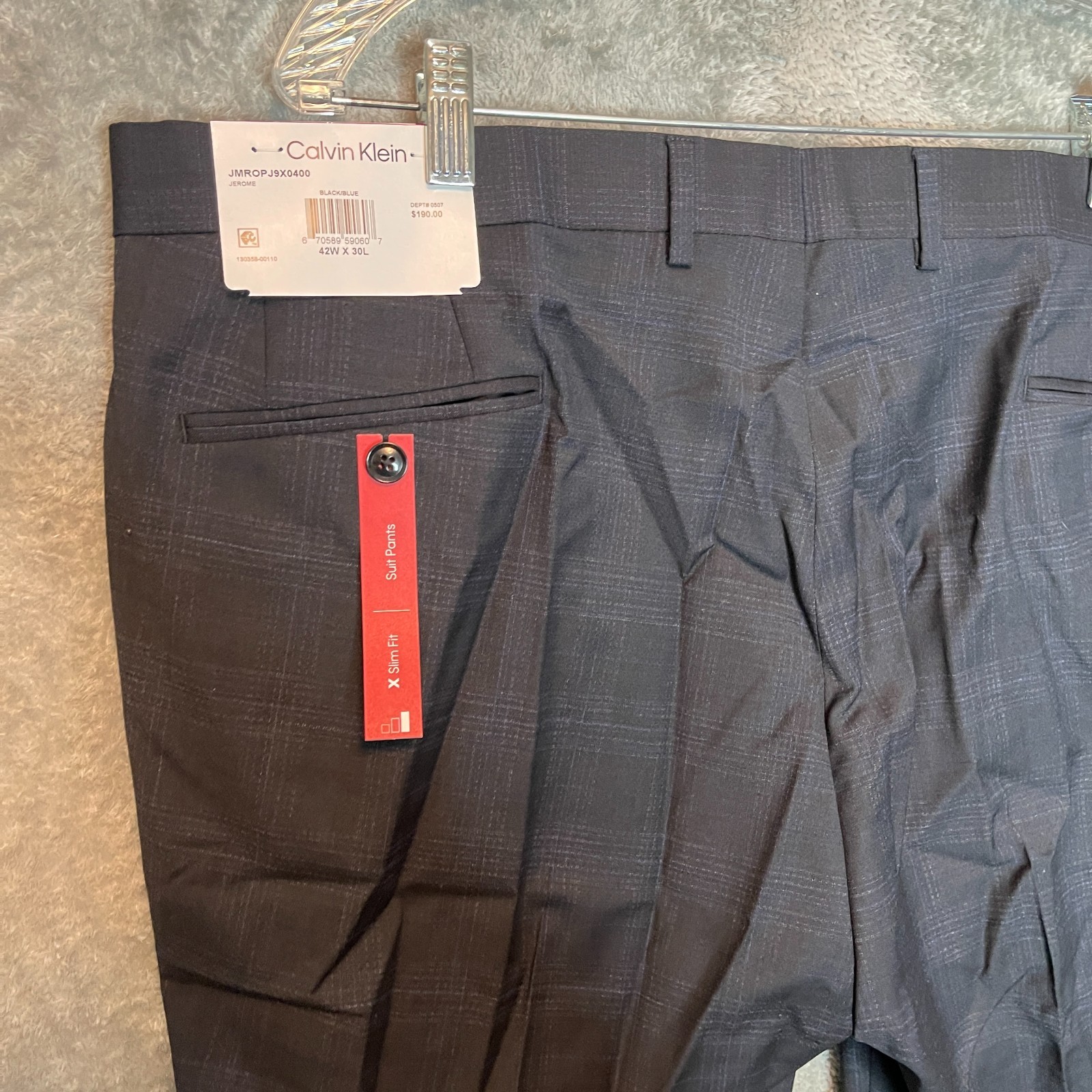 Good Pre Owned condition. Please see photos for details. SUPER FAST SHIPPING!!! We ship next business day! If you aren't happy with your purchase we offer 30 day FREE returns. No questions asked! Calvin Klein Men Jerome Black Blue Plaid Wool Blend Slim Fit Suit Pant 42x30