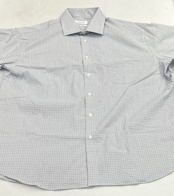 Calvin Klein Men's Wrinkle Free Dress Shirt Size: X-Large (17-17.5,32/33) Color: Blue Content: 64% Cotton / 32% Recycled Polyester / 4% Elastane
