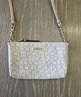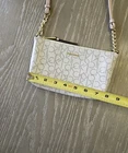 Pre-owned in excellent condition 👌 The Calvin Klein Saddle Bag Purse in Creme Gold is a stylish and versatile accessory perfect for various occasions. Made from faux leather with gold hardware accents, this small rectangular bag features a monogram pattern and a zip closure. The shoulder strap adds convenience, while the gold lining adds a touch of luxury. Ideal for travel, parties, casual outings, or business events, this Calvin Klein purse combines classic style with modern functionality, making it a must-have fashion statement for any city fashion-forward woman.
