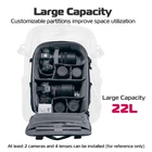【Extra Large Capacity】 This camera and lens bag provides multiple rooms, which can accommodate at least two long lens cameras and 4 additional long lenses, while you can DIY the inner space by removing the thick dividers based on your equipment. 【Rich Internal Structure】There is a dedicated inner bag and multiple small mesh pockets inside, which can accommodate a 15.6-inch laptop or tablet/iPad. The bottom strap is for mounting a tripod. The front of the camera gear backpack has a zippered pocket for accessories. The side zipper opening provides quick access to the camera. 【Portable Bottom Tripod Strap】The tripod or monopod can be fixed to the bottom with a strap without changing the center of gravity, because the weight of the tripod and backpack is evenly distributed, which contributes to comfort when carrying. 【All Weather Protection】The BP09 camera backpack is made of waterproof and rainproof material on the surface, making it completely weatherproof. The backpack's ventilated back and sturdy, easily adjustable shoulder straps help add necessary comfort and breathability when fully loaded. 【For Urban Travel】Dimensions: 17.3 x 6.9 x 13.3 inches (440 x 175 x 340 cm), only 3.8 lbs (1.726 kg). Large-capacity travel backpack, ideal for long trips. In a compact design, the maximum capacity is 22L! 【Multifunctional DIY】The package contains 7 camera compartments, which can be used in DIY combination. By removing the camera compartment, this DSLR camera backpack can be easily converted into a simple straight everyday backpack that is lightweight and flexible. Its simple appearance and perfect size make it perfect for daily use, outdoor travel, commuting or short trips. Also makes a great Christmas gift for photographers, friends, family, and a great gift for men and women.