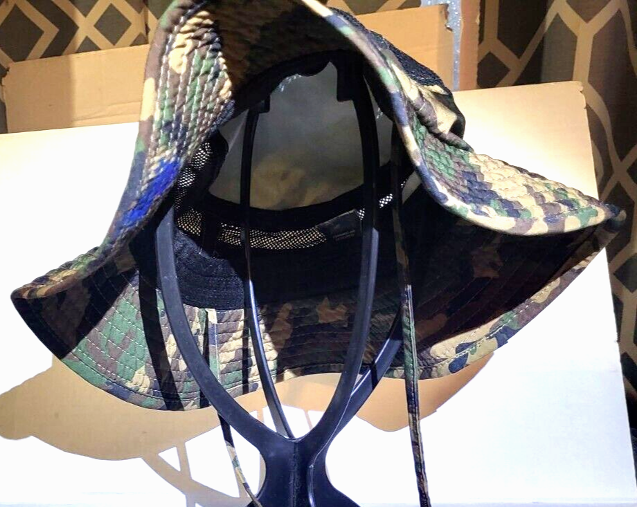 Bucket Hat Camouflage Boonie, Fishing Green Vented Adjustable Strap In Very Good Pre Owned Condition