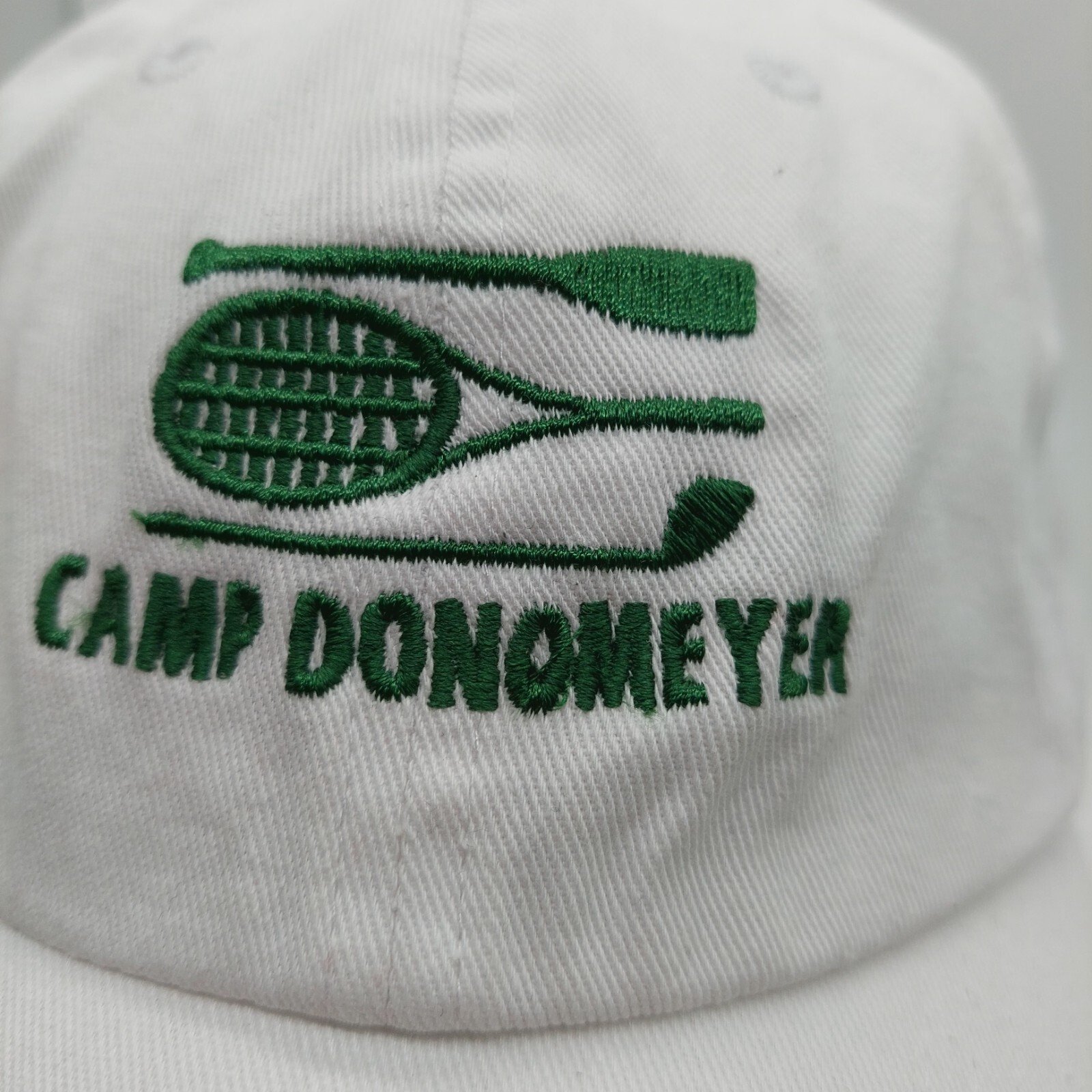 Camp Donomeyer Hat White Green Embroidered Buckle Strap