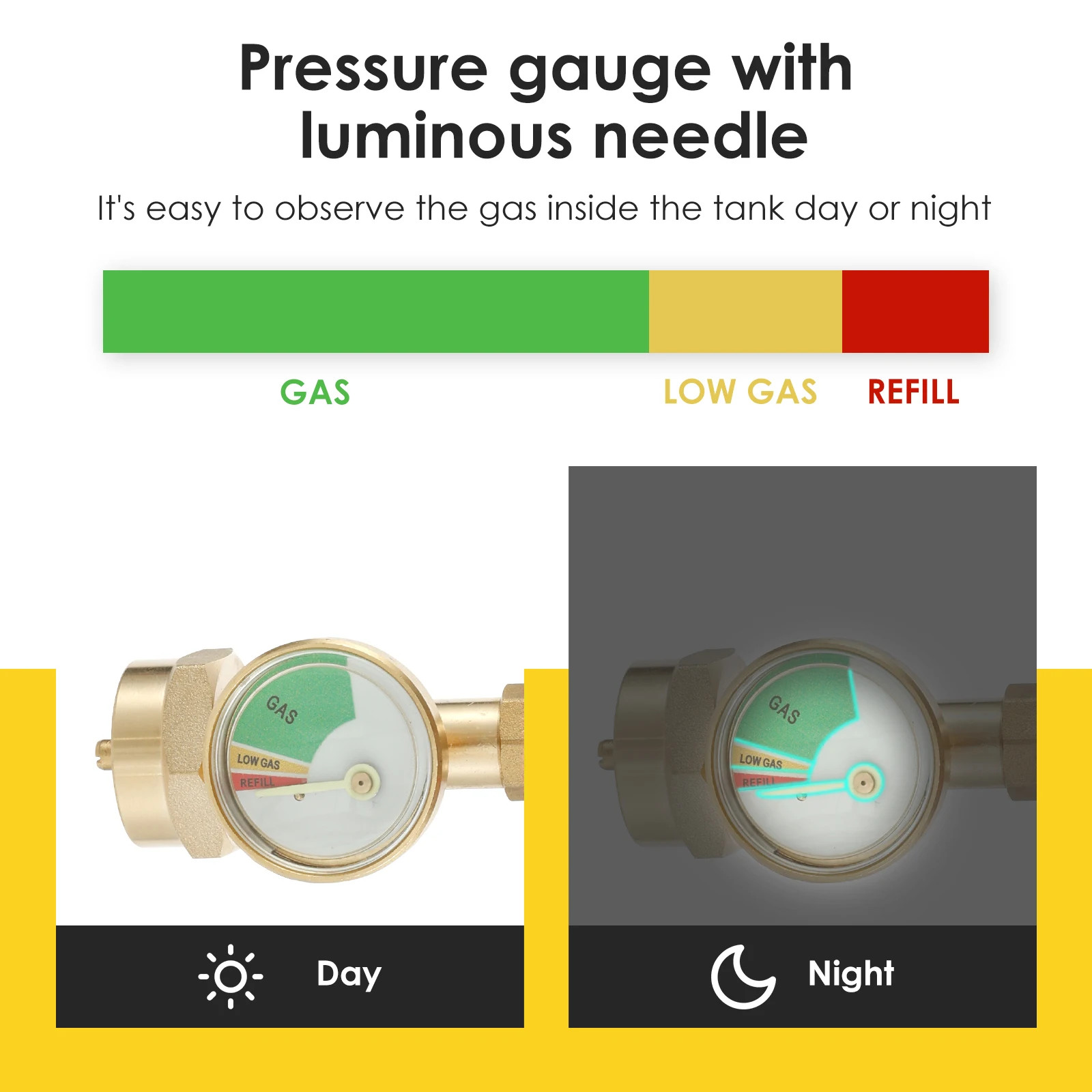 Copper and PVC Construction: The propane tank refill hose is crafted from copper and heat resistant PVC, it offers excellent flexibility for easy bending and handling during use. Convenient Installation: The propane refill hose easily connect to a 1 lb propane tank, attach the QCC1 connector to a larger tank, and organize the process with the control valve. Versatile Compatibility: The propane tank hose supports up to 350 PSI and connects to 1" x 20 internal thread cylinders, suitable for refilling 1 lb camping bottles or connecting to 5 to 40 lb propane tanks. Suitable for Outdoor and Home Applications: The propane tank extension hose is suitable for portable grills, camping stoves, tabletop grills, and heating equipment, making it an essential for camping, picnics, heating, or outdoor cooking.
