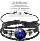 Zodiac Signs Spirit Bracele for Women Men:12 constellation is on the sky,just like everyone in the world,each zodiac sign has its unique personality and story. Our zodiac bracelet captures the traits and symbols of each sign vividly through intricate design. Glow in the Night Zodiac Bracelet:Constellation bracelet for couple,each bracelet is showing an astrological sign of the Zodiac,which will become your lucky charm. It also features a night glow effect inspired by the constellations. During the day, it absorbs sunlight or artificial light;at night,it emits a subtle green glow in the darkness,resembling stars twinkling in the night sky. Constellation Bracelet:The zodiac bracelet is made of PU leather materials,the texture is fine,the handle is strong and tough and the leather is moderately soft and hard. Optimum Selection:This bracelet holds profound meaning.Zodiac signs spirit bracelet is ideal choose for yourself,your lovers,your girlfriend,your friends,your family or other people dear to you on halloween,christmas,cosplay,party,wedding and any special dates. Kind reminder: Constellation accessories are movable. If the button falls off, you can manually press it back. The accessories and bracelet are completely compatible, not a quality issue with the product itself. Thank you for your interest in our product. After-Sales Service:Your satisfaction is our greatest happiness! We are committed to providing customers with quality products and satisfactory after-sales service,please feel free to contact us if you have any question.