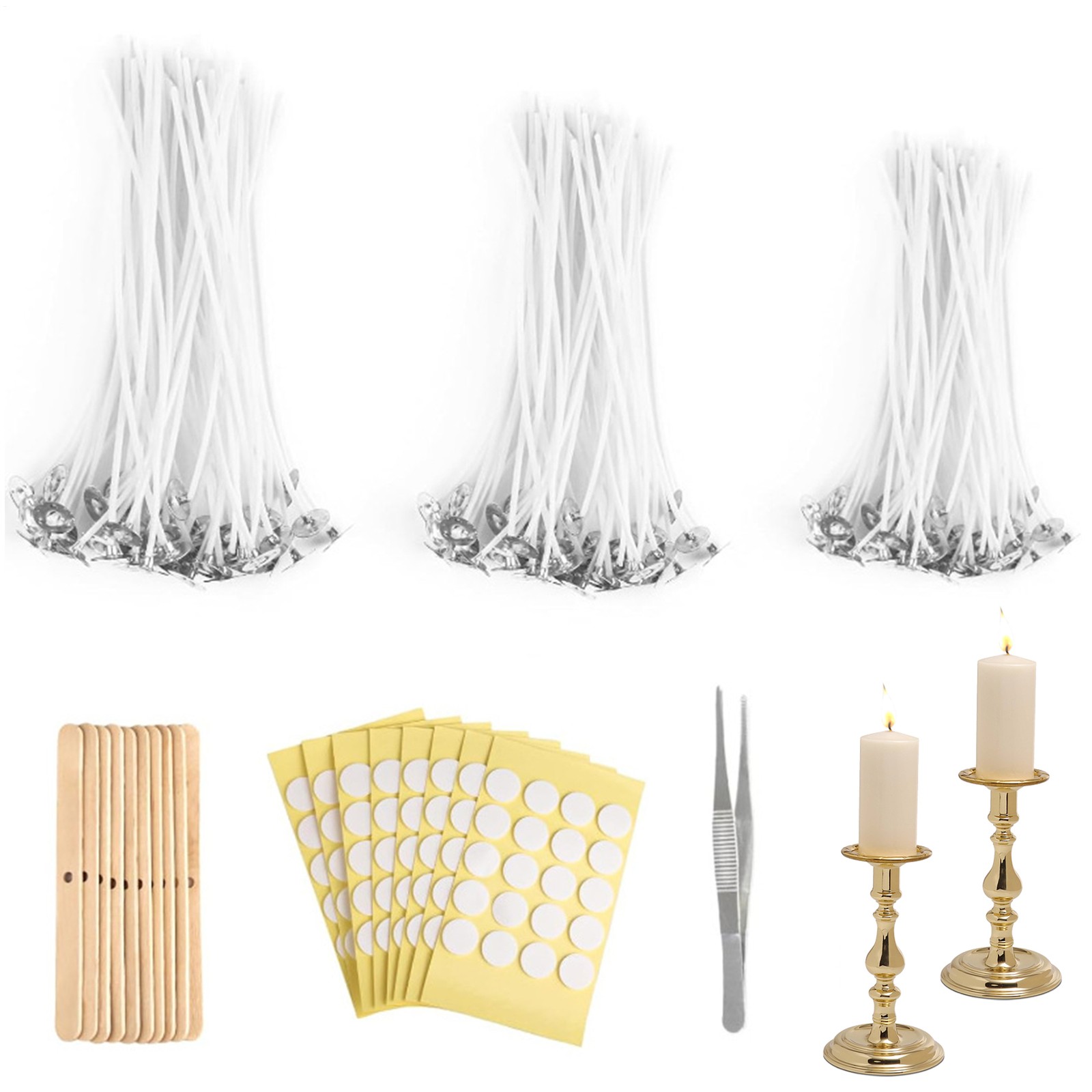 Candle Wicks Set Reusable Candle Making Kit With Tweezer Sticker Portable Crafti Product Description Bullet Points: Convenient to Use: Using our double-sided candle wick stickers with super strong adhesive power, you can fix the wicks in the candle cup easily, ensuring they remain stable during wax pouring Saving Time: With the candle wick holder that helps fix the wick securely, you can make multiple candles simultaneously, optimizing productivity and ensuring the wicks are not easy to move, saving both time and energy A Complete Kit: Efficiently manage your candle wicks with the included bottom and straight-tipped tweezers, ensuring ease and precision in your daily candle crafting tasks Widely Used: The pre-waxed and labeled candle wicks are very perfect for soy and beeswax, accommodating various containers and usage scenarios with ease Ideal Present: Embodying thoughtfulness and care, this candle wick set is a heartwarming present idea for loved person, leaving them feeling delighted and appreciated Includes cotton wicks, wick stickers, & wooden holders. Perfect for soy wax or beeswax, fix wicks effortlessly with the included candle wick holder. Ideal for presenting to loved person. Specification: Name: Candle Wicks Set Material: Cotton Quantity: 150 Pieces of Cotton Candle Wicks (4"x50 Pieces, 6"x50 Pieces, 8"x50 Pieces) Packing List: 1* Candle Wicks Set Note: Due to different lighting and screen settings, the item color may be slightly different from the picture. Due to different manual measurements, please allow a 1-2cm difference in size. Payment 1.PayPal is a preferred Payment method. 2.You can make a Credit payment via Paypal.Paypal will let you use MasterCard,Visa to pay. 3.Payment should be completed within 3 days after auction closed, or unpaid dispute will be filed for an closing auction.An unpaid case will be filled after 4 days. Delivery details 1. We ship to many countries. 2. Delivery Time: Ship from China via Speedpak to US (takes 8-12 days) Ship from China via others shipping method to other countries (takes 15-60 days) 3. If you want to choose another address, please leave us a message on ebay.Please check your shipping address carefully before checkout,it can't be changed if order completed. Seriously promise:Refund or resend will be offered if item still not arrive in 7-10 business days. Just send us an email,we will give you a satisfied solution as soon as possible. Return policy 1.All item comes with Basic 3 Months Sellers Warranty, if item defective in 3 months,We will offer replacement without extra charger (including shipping fee) After we receive the defective item. If item Defective after 3 Month, Buyers can still send it back, We will contact suppliers or Manufactory for Warranty. Buyers Might Need pay the Shipping fee For resend the replaced item. 2.If item DOA(Dead of Arrival), Buyers can return it in 30 Days, we will replace it with new item after we receive DOA item. Please Contact us Before you sent the item back. 3.All item can be returned for exchange only. The buyer has responsibility for all return shipping including DOA or defective return. About Feedback When you receive the item and satisfied with the product, please leave positive feedback and 5 scores DSR. We will leave a 5 Scores DSR feedback for you. If, for any reason you are not satisfied with your purchase, please contact via Ebay Message and we will do our best to resolve it. Please don't leave neutral or negative feedback without any communition with .