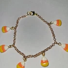 Indulge in the sweetness of fall with this delightful Candy Corn Bracelet. Crafted with care by hand, this bracelet features a charming design that will surely brighten up your day. The bracelet is made of durable polymer clay and has a gold tone finish that complements its vintage style. Measuring 7 inches in length, this bracelet is perfect for women who love to accessorize. It is a charm bracelet with no stone and is suitable for any occasion. Whether you're going to a party or just hanging out with friends, this bracelet will add a touch of fun to your outfit. Made in the United States, this bracelet is a perfect gift for yourself or your loved ones.