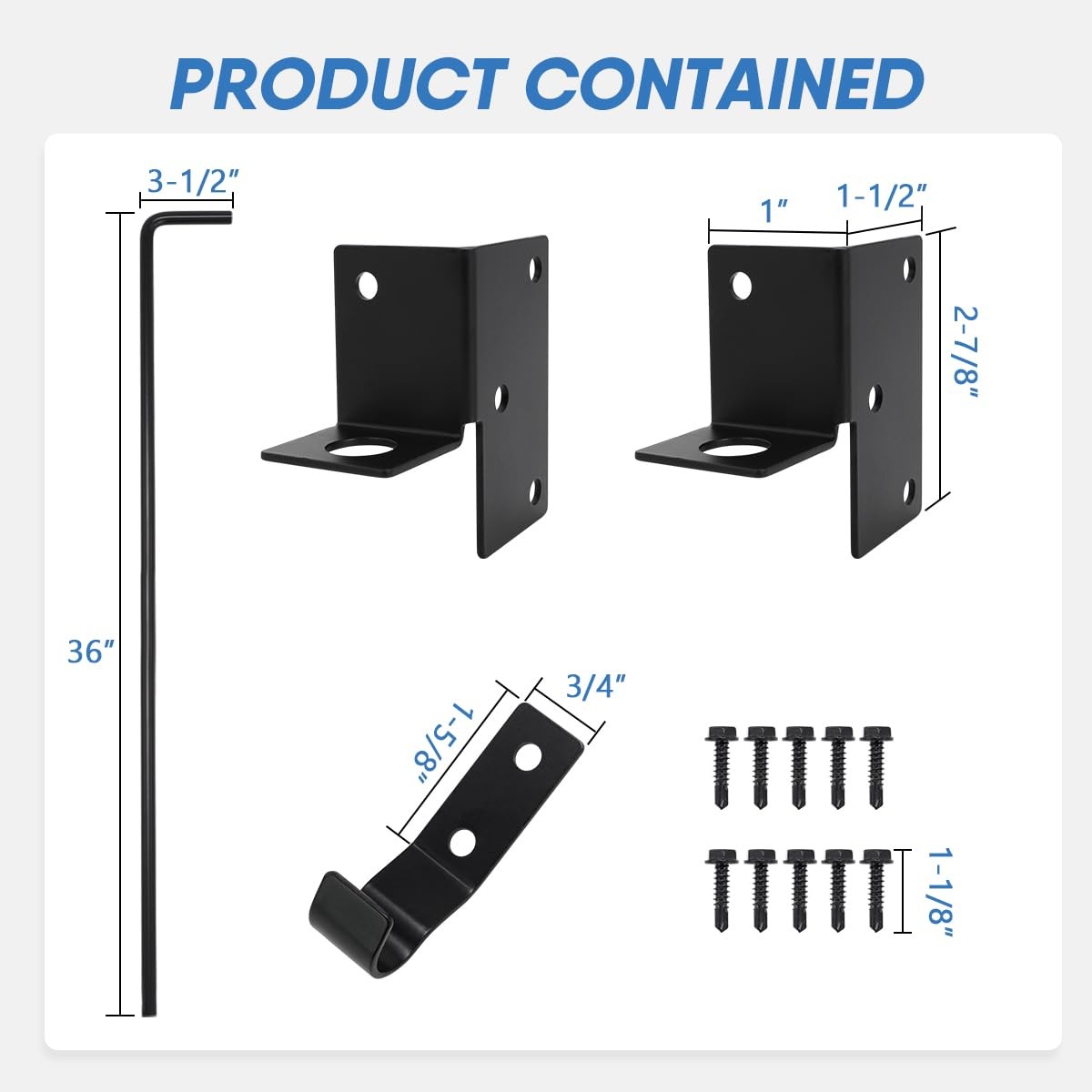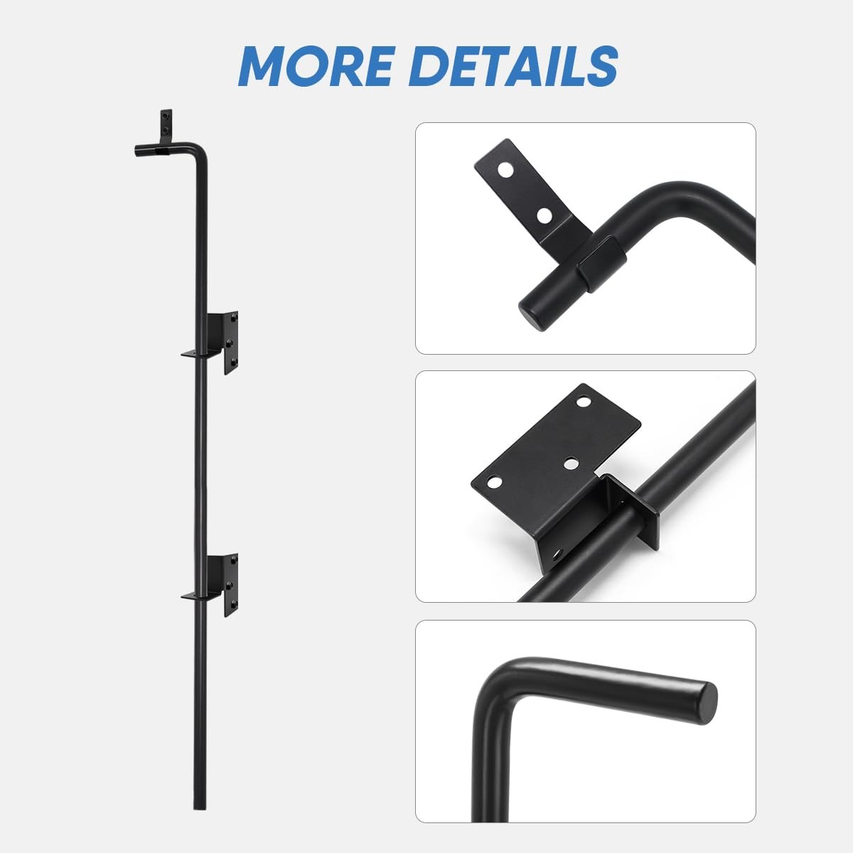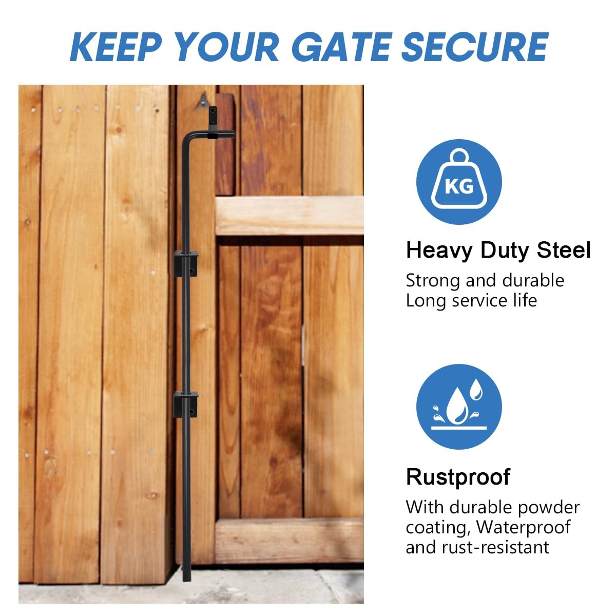 Product description Size:36 inch ★ The product is designed for wood fence gates, metal gates, iron gates or vinyl gate applications. It can guarantee your safety. And you can use a lock to keep the gate from being opened by others ★ It has a smooth and round surface, which can avoid scratches.and black finish is suitable for most colour of doors and can match well ★This bolt is made of heavy duty steel material, which is firm and durable, if you want to enhance security, this device is a good choice, it can prevent theft very well. ★Specifications: Color: black Material: heavy duty steel with black finish Product size:36 inch long rod diameter:5/8 inch rod ★Package content: 1 pillar bolt 3 fixed metal plates 10 assembly screws Large Scale Use :Works good with wood fence gates, metal gates, iron gates or vinyl gate applications Usage : This cane bolt can be Used To Lock Gates Or Hold Gates In Open Position or closed position Manufacturing Process: This cane bolt is made of Heavy duty steel, with durable powder coating, black finish strong and durable, long service life Easy To Use :This Heavy Duty Gate Drop Rod includes one sugarcane bolt, three fixed metal pieces.ten screws Simple installation. Suitable for anti-theft and reinforcement of the gate. Dimensions :Length: 36inch Rod Diameter:5/8inch Colour:Black Suitable for door thickness over 1-3/8inch