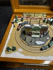 The Cannonball Express Music Box Gold Label by Mr. Christmas is a decorative collectible that plays the classic tunes of "Chattanooga Choo-Choo." Manufactured in China in the 21st century, this music box is a nostalgic and charming addition to any collection. With its intricate design and high-quality craftsmanship, this music box is sure to bring joy and whimsy to any space.