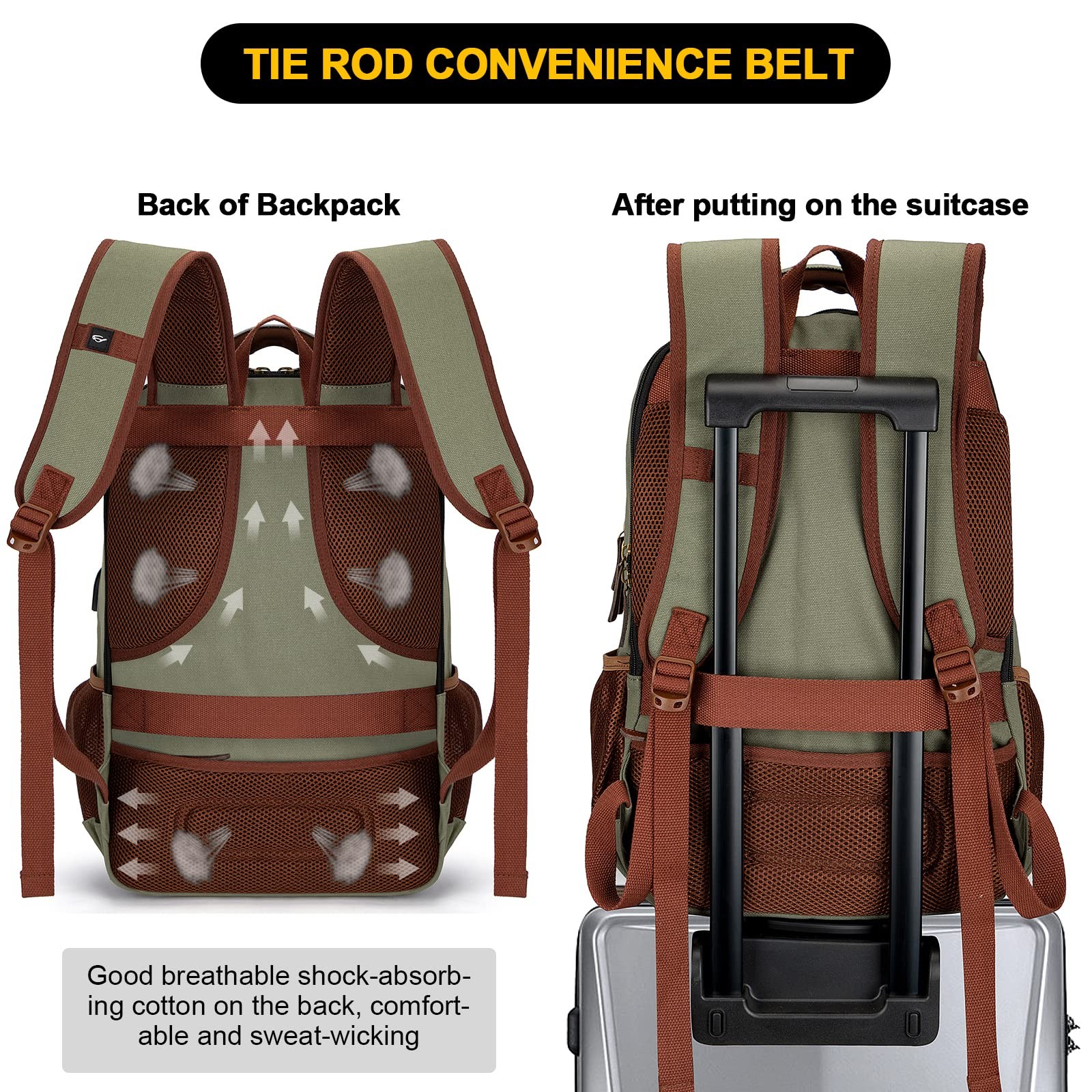 are a company that specializes in the design and manufacture of backpacks. We are committed to offering our consumers with well-designed, high-quality products and to continuously improving our products to fit their demands. Our main goal is to give clients with a practical, comfortable, and ideal experience. A plush interior, a strong protective ridge around the zipper, and a waterproof material outside shield your device from scratches, knocks, bumps, and accidental drops. The combination of a water-resistant 300D nylon exterior and a protected soft cushioned inside ensures amazing sturdiness and longevity. The durable materials will resist ripping and wear, ensuring years of use. One side pocket with a magnetic buckle that allows for easy access and secure storage of small goods. FEATURES: 300D nylon built Built in USB and headphone port Can hold up to 15.6 inches laptop Anti-theft design [Sturdy] 100% cotton high-density canvas material.(Not Water Resistant) [Large Capacity and Organized] backpack has one separate laptop compartment that can hold any laptop up to 15.6 inch. It also has one spacious compartment for storing any item like daily necessities, tech related items, accessories, toiletries and many more. [USB and Headphone Port] This backpack has external USB port with built-in charging cable offers convenient charging your cellphone by connecting your own power bank. The headphone port outside gives easy access to Earphone usage as well. (battery pack NOT included). [Large Size] Sized 18.11 x 12.21 x 6 inch(46 x 31 x 15 cm),Item weighs 2.4lb; Capacity of 30-35 Liters. [Multipurpose Design] Comfortable Wide Padded Shoulder Strap Design Which Makes it Easy to Carry Around. It is also unisex design and has various built-in compartments as well which makes it perfect for daily use at office and travel. (This product is suitable for people over 15 years old.)