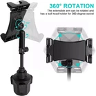 Car Cup Holder Tablet Mount & Phone Cradle Stand Truck for iPad Pro 9.7 11, 12.9 【EXPANDABLE STUDY BASE & ATTACHED COASTER】The car tablet cup holder mount made with heavy-duty expandable base, adapts to most round cup holders between 2.36"-3.94" due to the three extended ears, which keeps the device from wiggling during a hard drive, making it easy for map-viewing, phone calls and hassle-free charging, suitable for most cars, recreational vehicles, automobiles, SUV, trucks, boats, etc. Equipped with 1 piece cup holder coaster provide ideal decoration and anti-skid effect. 【BROAD COMPATIBILITY】The adjustable side clamps of this 2 in 1 car cup holder iPad mount can be extended from 4.7" to 9.2", compatible with all 4.7 - 12.9 inch smartphones and tablets, such as iPad Pro 9.7/10.5/11/12.9, iPad Air 2/3/4/5, iPad Mini 1/2/3/4/5/6, iPhone 14/14 Pro/14 Pro Max, iPhone 13/13 Pro/13 Pro Max, iPhone SE, iPhone 12/12 Pro/12 Pro Max, iPhone 11/XS/XS Max/XR/X/8 Plus/8/7/7 Plus/6 Plus/6, Galaxy Tab/ Galaxy Note/ Galaxy S/Galaxy Z Fold 4 3, Amazon Fire HD 10/8/7/6 and etc. 【TELESCOPIC STURDY ARM】This tall mobile phone tablet mount for car cup holder is highly adjustable due to the from 9"-11.8" extendable and 180-degree horizontal adjustable gooseneck arm, which can offer you a stable viewing platform and doesn't block anything on the dashboard, ensuring that you can drive safely without the line of sight block. 【360 DEGREE ROTATION & EASY TO INSTALL】The clamps of this vehicle tablet cup holder mount for the truck can be 360-degree rotated with the flexible ball joint and can be easily adjusted to your preferred viewing angle. Due to the soft silicone padded surface, you needn't worry about a scratch or damage to your device. Also the car cup ipad holder is very easy to assemble without tools and works well on both tablets and smartphones. 【SOLID CONSTRUCTION & LIFETIME WARRANTY】The high temperature resistant PC and ABS materials make cup holder tablet mount sturdier than other pure ABS mounts. We strive for excellence with our products and our customer service. If there is any quality problem with our car cup holder tablet mount or you are not happy with your purchase in our store, please feel free to contact us and we will solve it for you in 24 hours. (Package Includes: 1x cup holder mount, 1x coaster, 3* extended base adhesive pad)) Product Description Xishwon Car Cup Holder Tablet Mount Xishwon cup holder tablet mount for car is made with a heavy-duty sturdy expandable base for ultra stability and designed with an adjustable solid arm for optimal viewing angle, ensuring you an extremely reliable and safe driving. It is a suitable product for commercial vehicles, businesses, trucks, SUVs, etc. Strong Stability - Made from a thick, rigid and durable plastic Universal Mount - Accommodate screen size from 4.7"-12.9" Adjustable Expander - Fit into cup holders between 2.36"-3.94" Telescopic Arm - Steadily stand up from 5" to 9" Multi-Angle - 360° rotatable mount and 180° horizontal rotatable arm Expandable Stable Base Made with a heavy-duty adjustable base, the iPad cup holder car mount is capable of securely locking inside the cupholder of cars, trucks, pickups, SUVs, boats, or any other vehicles. NOTE: Please carefully compare the size of the car cup holder and the product before purchase to ensure that this product can be placed in the car cup holder. 360° Rotation Clamp The clamp of the cup holder tablet mount for truck can be 360° swiveled due to the ball joint, providing the landscape or portrait view. Portrait mode is ideal for charging, listening to music, and hands-free phone calls, while landscape view makes using your favorite navigation apps easier. Height And Angle Adjustable Extensible ipad pro car stand arm allows for adjusting the height of the device for optimal eye levels, also can be 180 degree adjusted the arm to keep your device in best position, which can offer you a stable viewing platform and doesn't block anything on the dashboard , ensuring that you can drive safely without the line of sight block. Rubber Cushion& Attached Coaster Protective rubber grip to hold your tablet stably and prevent your device from falling out, and you needn't worry about a scratch or damage to your device. cup holder tablet mount is equipped with 1 piece car coaster, which can be placed under the cup to increase friction and provide an ideal anti-skid effect so that your beverage cup will be more stable and not easy to overflow when driving. Fits for all 4.7"-12.9" Tablet & Phone For IPad Pro 9.7" / 10.5" / 11" / 12.9", iPad Air 9.7" / 10.5" / 10.9" / Air 5 / 4 / 3 / 2 / 1, iPad mini 7.9" / mini 6 / 5 / 4 / 3 / 2, iPad 2021 / 2020 / 2019 / 2018 / 2017, iPad 10.2" / iPad 8th / 7 / 6 / 5 / 4; For iPhone 14/14 Pro/14 Pro Max, iPhone 13 / 13 Pro / 13 Pro Max / 12 / 12 Pro / 12 Pro Max / iPhone 11 / 11 Pro / 11 Pro Max / XS / XS Max / XR / X / 8 Plus / 8 / 7 / 7 Plus / 6 Plus / 6; For Samsung Galaxy Z fold 4 3/ Samsung Galaxy Tab 10.5" / 11" / 12.4" / Tab S7+ / S7 / S6 / S5 / S5e / S4 / S3 / S2, Tab A / A7, Tab 7.0" / Tab 4 / 3 / 2, Tab Pro S; For Galaxy S21+ / S21 / S20 Ultra / S20+ / S20 / S10 / S10e / S10+ / S9 / S9+ / S8 / S8+ / S7 / S6, Note 20 Ultra / Note 20 / Note 10+ / Note 10 / Note 9 / Note 8; For Google Pixel C / 3a / XL / 3 / 2XL / 2, Nexus 5X / Nexus 7 / Nexus 9 / 6P; For Amazon Kindle Fire HD, Fire HD 10; For Huawei / LG / Switch, Sony Xperia Z4 Tablet, Nvidia Shield Tablet K1, Asus ZenPad 3S 10 etc. Easy to install 1. Insert the nut into the ball joint adapter of the cup mount. 2. Insert the ball head into the socket at the back of the bracket and then turn the adjuster to tighten. 3. Place the mount base into the cup slot of the car, and then turn the adjuster to fit the slot. 4. Pull the bracket arms and put your device into the bracket then grip. NOTE:To achieve the most stable effect, please refer to the placement angle of the bracket as the picture showed. 36