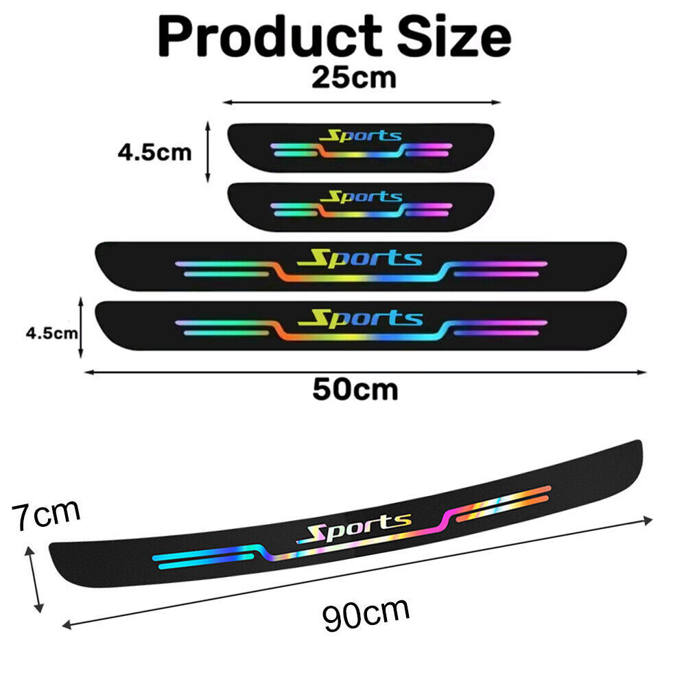 Car Door Sill Protector Scuff Plate Trim Sticker Strip Auto Accessories Sports Features 1. Safeguard your car with ease: Our car door sill protectors guard your vehicle from scratches, dings, and dirt. The waterproof coating easily wipes clean, while the stickers conceal existing scratches and prevent new ones. 2. Stylish Accents: Elevate your car's look with our Sports pattern guards. Not only do they protect your doors, but they're also great dress-up accessories. Perfectly sized to fit 98% of cars on the market. 3. Easy to Install: With adhesive on the back, installing these guards is quick and easy. No drilling necessary - simply ensure a clean, dry surface and avoid removing or repositioning after installation. 4. Package Includes: The set contains 2 front door sill protectors, 2 rear door threshold stickers. These items are designed to fit most Cars, SUVs, and Pickup Trucks perfectly. 5. Customer Service: If you experience any issues with our product, please don't hesitate to reach out to us. We will provide you with a solution that exceeds your expectations. Package included: 2pcs front + 2pcs rear Door Scuff Sill Cover 1 x Rear Rubber Bumper Payment Delivery details Terms of sales About us Contact us Payment - We accept the payment through Payoneer only. Delivery details 1. Please make sure your address in ebay is correct. 2. We will only follow your address listed in the ebay orders for the shipment. 3. Import duties, taxes and charges are not included in the item price or shipping charges. These charges are the buyer's responsibility. Terms of sales 1.You have 7 days to contact us and 30 days to return it from the date it was received. If this item is in your possession more than 7 days,it is considered used and WE WILL NOT ISSUE YOU A REFUND OR REPLACEMENT. There are NO EXCEPTIONS! 2. All returned items MUST BE in the original packaging and you MUST PROVIDE us with the shipping tracking number, specific reason for the return, and your eBay ID. 3. We will refund YOUR FULL WINNING BID AMOUNT, upon receipt of the item in its original condition and packaging with all components and accessories included,AFTER BOTH Buyer and Seller cancel the transaction from eBay. OR, you may choose to have a replacement. 4. Return shipping is to be paid by the Buyer. About us High quality product quality is our aim. Satisfying you is our happiest job. Therefore, we will try our best to provide you with the best products and services according to your requirements and deliver them on time. If we do not make enough improvements or need improvement, please send us an email suggestion. If you like our products and services, please provide us with positive feedback in advance so that we have more confidence and more opportunities to serve more client. Contact us 1. We greatly appreciate your POSITIVE feedback. 2. Negative or Neutral feedback does not resolve any underlying issues that you may be experiencing as a buyer. 3. Any question or unsatisfaction please contact us with ebay message, we will sincerely solve for you. Our Working Time is (GMT+8): 8:00AM -- 5:00PM (Monday to Friday)