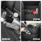 Return Policy Fast Delivery Trusted seller Car Purse Holder Between Seats, Large Capacity Purse Holder for Car, Storage Bag for Backseat Pet Kid Barrier, Universal for SUV, Truck, RV (Black) Product Description Double-Sided Storage: This purse holder for car is uniquely designed with two small storage pockets on the front and a large, spacious storage slot on the back. Our car purse holder not only helps you organize your car's contents easily, but also makes effective use of space, making your driving environment neater and more organized. Effective Isolation: This car purse holder between seats is especially suitable for families who need to travel with children or pets. When placed in the center console, the car net pocket handbag holder can act as an effective physical barrier to prevent children or pets from jumping from the front seat to the back seat during driving, tby avoiding possible collisions and ensuring the safety of the whole family. Selected Materials: Made of leather and four layers of reinforced fabric, the bottom of the car handbag holder between seat is specially added with a thickened hard leather board, which makes the entire structure both durable and beautiful. Even if the purse car holder is used for a long time, it will not deform or wear. Easy to Install: The installation process of the car handbag holder is very simple and quick. First, fix the ropes on both sides of the top to the headrest rods of the driver and passenger seats respectively; then open the central armrest box, pass the two ropes at the bottom around the inside of the armrest box, and fix them with stickers; finally close the armrest box to complete the whole operation. Widely Applicable: The size of this purse holder for car between front seat is about 14.6 inches long at the bottom, about 5.3 inches wide, about 4.3 inches high at the front, and about 10.2 inches high at the back. It is very suitable for most cars, trucks, SUVs and even off-road vehicles with forward-opening armrest boxes. Whether you are commuting daily or traveling long distances, purse net for car between front seat is an ideal choice to enhance your driving experience. Shipping Returns Payment Shipping Shipping is FREE to all addresses other than APO/PO boxes in the lower 48 states. All our stock ships from US-based warehouses. Shipped via USPS or UPS (depending on location and package weight) Unless stated otherwise, all orders will ship within 24-72 hours of your payment being processed. Check our feedback to see the great reviews of FAST shipping we offer. Returns Seller does not accept returns Payment We currently accept payment via eBay managed payments only. Once payment is cleared, we will dispatch your shipment within 1-3 business days. Please refer to the "Shipping" tab for more information regarding shipping speed to your destination.