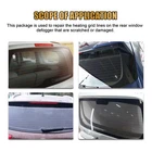 Car Rear Window Defogger Heater Grid Lines Repair Kit for Scratched Defroster Description: Rear window mirror defogger repair kit is designed to repair scratched or broken rear window defogger grid lines. Surfaces to be adhered must be smooth and flat. Repairs can be made ideally at temperatures from (10 Celsius to 24 Celsius). It provides a low-cost, high-quality repair for damaged rear window defogger grids and tabs. Features: 1. Used to repair scratched or broken rear window defogger grid lines. 2. Make permanent, invisible repairs. 3. Fix quickly and easily with a cheap cost. 4. Glue is specially formulated to conduct electricity. 5. Follow the instructions easily by step. Instruction: Step1. Determine which grid line is broken and where the repairs need to be made, turn off the rear defogger. Clean the surface of the glass with cloth. Step 2. Carefully place the masking tapes over the broken area of the grid. Make sure to align both ends of the broken line with the masking tapes. Make sure there is a good seal between the window and the masking tapes. Press the masking tapes against the glass and make sure that all air bubbles are removed. Step 3. Apply the silver repair compound over the top of the masking tapes with the cotton swabs provided. To avoid solid material remains on the bottom or sides of the bottle, Stir the silver repair compound with cotton swabs before use, Step 4. Use plastic scraper to make the surfaces smooth and flat. Make sure that the silver repair compound overlaps with both ends of the broken line. Look through the window from the inside, there should be no light showing through the repaired area. If light shows through, apply another coat of repair compound. Step 5. Remove the masking tapes immediately. Step 6. After removed the masking tapes, dry the silver repair compound. (A)Curing within 15-20mins if let dry naturally. (B)Curing within 2-5mins if Dry with a hair drier. Step 7. Clean the extra silver repair compound on the glass with alcohol prep-pad. Wait 24 hours before turning on the defogger. Packing List: Repair adhesive * 1 Cotton swab * 10 Cleaning cloth * 1 Tape * 1 Cleaning cloth * 1 Instruction * 1 Mixing rod * 1 Payment Delivery details Terms of sales About us Contact us Payment All major credit cards are accepted through secure payment processor ebay. When buying multiple items, please use the eBay shopping cart and check out once for all the items instead of paying for them individually. Whenyou click the Pay Now button, eBay will automatically determine if there are other items you have won or purchased from me and will combine them for your review. Delivery details Please make sure it’s correct and include phone number via when you make payment. This will help your product to be received safely and quickly! And we are not responsible for order's delay or miss because of your incomplete contact information.If you need to change your address, Please contact us Terms of sales 30-day Warranty with Exchange for defective, malfunctioned, incorrect or parts-missing items. Please notify us and simply return the item with all parts and accessories packed and marked "FOR EXCHANGE" within 30 days of receipt. About us We highly appreciate that you can contact with us before you leaving Negative feedback or Neutral feedback. It is because leaving Negative feedback or Neutral Feedback is never a good way to resolve problem. We will offer proper arrangement and help to resolve any problem as soon as possible. Contact us Please contact us through eBay link if you have any questions. We will reply you within 24 hours. Please check you spam mail if no response for 24 hours. excluding weekends and public holidays.