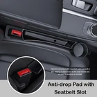 About this item [4-in-1 Multi-functional Design]: The innovative design of this car seat gap filler strip – anti-drop pad with seatbelt slot, can realize the 4 functions of filling gap, storing , holding cups and hanging at the same time. It is a powerful interior accessories for your car. No more lost items, all within reach. Adopts unique TPE material with a textured surface, easy to clean and water washable. [Effective No Drop Seat Guard with Cup Holder]: This universal dual storage slot car seat crack gap filler organizer can effectively prevent small things from falling into the gap between front seats and the center console. A slot is for storing the keys, phones, earbuds, change, credit card, make-up, snacks etc. And the other is a cup holder which is convenient for you to place and access the cup or water bottle. [Convenient for Hanging & Charging]: Hidden hole design for charging at the bottom, to avoid messy entanglement of the charging cable. It has a hook added at the end.Which is able to hang things, increase the use of space in the car, and also provide convenience when transporting some special items. [Universal Fit & Perfect Protection]: Universal car seat gap filler strip fits well for most car trucks and SUVs. Package comes with 2 pcs, 1 for the driver side and 1 for the passenger side. Note: if installed correctly, the straight edge without the opening is on the console side. [Easy to Use & Install, Less Troubles]: Car gap filler plugs attaches securely to the seat belt catch via built-in slot, staying in place even as the seat moves and no need to readjust or reinstall. It also provides full coverage in front of, surrounding and behind seat belt catch. Not damage your car's interior. It will never fall apart and lasts a lifetime. The Car Seat Gap Plug with Storage Slot by LeaHun is a practical and stylish accessory for forward-facing car seats. Made of durable Thermoplastic Elastomers (TPE) in a sleek black color, this auto gap filler organizer features a convenient cup holder and storage slot. With a 4.9/5 customer rating and a compact package dimensions of 17 x 4.5 x 3.2 inches, this unisex product is designed to securely attach to the car seat and keep your child's belongings organized while on the road. Perfect for parents looking to enhance their car safety seats with a touch of functionality and style.
