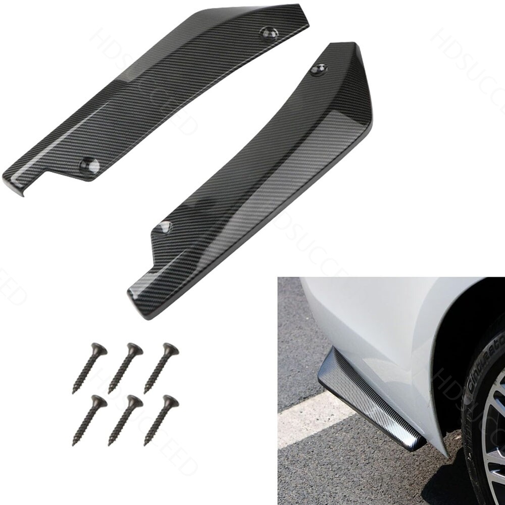 Feature: Comes with 2Pcs Rear lip wrap angle splitters. Please measure your Rear lip wrap angle and make sure these splitters will fit. Custom fit most vehicles, product may require drilling holes and apply bolts to attach to your bumper. Use double side adhesive tape or drill holes and bolt on to your bumper. Give your car a more aggressive racing look. Professional installation is highly recommended. Specification: Color:Black(Carbon Fiber Look) Material: Plastic Size:44*11cm/17.32*4.33in Type:Rear Lip Wrap Angle Splitters/Fender Flares Placement on Vehicle:Left, Right, Rear Fitment Type:Direct Replacement Number in Pack:2 pcs Surface Finish:Polished Fitment:Car Universal Package Included: 2 x Rear Lip Wrap Angle Splitters 6 x Bolts Notice: 1.Please allow 1-3CM differs due to manual measurement. 2.If you are not sure whether the item fits your car,please send me some photos of your car.(the front,the side and the back) 3.Any question please contact me freely. All questions will be replied within 1-2 business day. There might be some delay during weekends and holidays.