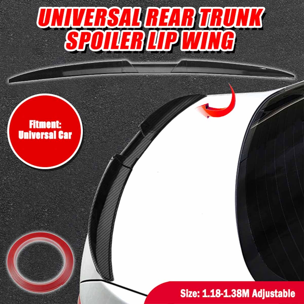 Product Description Note: Item model and Compatibility Table are just a reference, take size as a fitment standard. In order to avoid to choose Wrong Size item ,please measure car size before purchasing according our size photo. Make sure the length if you want before you buy,thanks. The product is made of elastic PU material, which can be bent and adjusted freely. If it is too long during installation, you need to cut according to the length of your car. If you mind, please do not purchase. Thank you for your understanding. Features: 1.Flexible and lightweight PU install in minutes using ultra strong automotive tape 2.No special installation , no drilling or screws required. 3.Gives your ride a more aggressive and customized look. 4.Protect your car from scratches/bump and any undesired damage caused by a collision. 5.This rubber lip is very flexible and can fit to different types of trunk or roof It comes with double side tape on the back for easy installation. Specifications: Material: PU Size: 1.18-1.38M Adjustable ( The product can be trimmed to fit the rear of the car in its own curvature ) Color: Carbon Fiber Look Position: Car Spoiler/Roof/Hatch Gate/Trunk/Bonnet Package Included: 1 x Car Rear Wing Sticker Attention: Measure the length of the rear wing of the car and cut the product according to the length of the rear wing; 1. Simulated installation Don't tear off the adhesive first, place the product on the car and compare and adjust it to the accurate position. 2 Surface treatment (1) Cleaning Use a towel dipped in alcohol or clean the vehicle body with clean water in the area that needs to be installed. (2) Precautions Before installation, the vehicle body must be kept dry and free of dust, oil, and wax. When the temperature is below 15 degrees Celsius, it is necessary to heat the adhesive on the vehicle body and product. (Heating with a hair dryer is sufficient) (3) Installation Tear off a corner of the protective film on the back of the product, leave the film on the outside to match the installation position, and then slowly remove and press the film. (4) Protection period Within 48 hours after the installation of the product (at the adhesive position), it should not come into contact with water, oil, or large dust Note: 1.Please allow some color and measurement errors due to manual and monitor factors. Payment Shipping Return Contact US Feedback We accept PayPal, MasterCard, Visa, Google Pay, Apple Pay, American Express, Credit Card, Debit Card, Gift Card. If you can not pay in time, please contact us. 1. Orders processed within 24hours of payment verification. 2. We only ship to confirmed Paypal addresses. Your PAYPAL address must match your Shipping address. 3. Service transit time is provided by the carrier. Transit times may be a little delayed during holiday season. 4. We will track the shipment and get back to you as soon as possible with a reply. Our goal is customer satisfaction! 1. Accept Return in 30days for refund or replacement, goods in resalable condition 2. Offer 90 DAYS for repair warranty 3. message for address and reference number before return(note: unannounced parcel may be returned to wrong address, seller will not be responsible for this. 1.We have always been doing our best to provide the best service and reliable products for every customer. 2.Please do not hesitate to contact us to resolve the issues.We will reply your emails and questions within 48 hours. ☆We're always working to improve the quality of our services,we are hoping to get your positive feedback and 5 Stars in return,so that we could do better for you in the future! ☆If you have any problem or unsatisfied with our products, please do contact us first,we will do our best to satisfy you.Your 100% satisfaction is our power to advance! Payment We accept PayPal, MasterCard, Visa, Google Pay, Apple Pay, American Express, Credit Card, Debit Card, Gift Card. If you can not pay in time, please contact us. Shipping 1. Orders processed within 24hours of payment verification. 2. We only ship to confirmed Paypal addresses. Your PAYPAL address must match your Shipping address. 3. Service transit time is provided by the carrier. Transit times may be a little delayed during holiday season. 4. We will track the shipment and get back to you as soon as possible with a reply. Our goal is customer satisfaction! Return 1. Accept Return in 30days for refund or replacement, goods in resalable condition 2. Offer 90 DAYS for repair warranty 3. message for address and reference number before return(note: unannounced parcel may be returned to wrong address, seller will not be responsible for this. Contact US 1.We have always been doing our best to provide the best service and reliable products for every customer. 2.Please do not hesitate to contact us to resolve the issues.We will reply your emails and questions within 48 hours. Feedback ☆We're always working to improve the quality of our services,we are hoping to get your positive feedback and 5 Stars in return,so that we could do better for you in the future! ☆If you have any problem or unsatisfied with our products, please do contact us first,we will do our best to satisfy you.Your 100% satisfaction is our power to advance! powered by