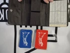 Card Holder and 2 Decks of Cards With Golf Backs - Vintage The case is fake leather or plastic/vinyl - I'm not entirely sure. The red deck is all there +2 jokers, the blue deck is all there with no jokers. The notepad only has 1 page on it. The outside of the case has some wear, there are discolorations, but it looks in good to very good condition to me. I'll be happy to combine shipping on items as long as they are in the same order. Please let me know if you have any questions, and have a CRAZY day!