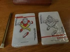 Card Holder with 2 Vintage fabric sealed decks of cards & pencil , Made in Hong Kong. Excellent vintage condition.