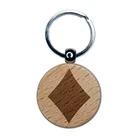 Card Suit Diamonds Engraved Wood Round Keychain Tag Charm
