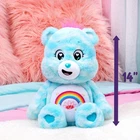 Sweet Serenity Bear: Care Bears Sweet Serenity Bear is here to promote personal wellness and find positive ways to “keep calm and care on!” With her sweet eyes that shine with heart-shaped accents and her adorable blue nose, she’s sure to delight any child or Care Bears collector! Belly Badge with Calming Strips: Sweet Serenity Bear is the FIRST Care Bear to feature calming strips on her belly badge, paw pads, and ears! These gentle, touchable details add an extra layer of soothing comfort, perfect for bringing calm and relaxation when you need it most. Calming Blue and White Colors: Sweet Serenity Bear is thoughtfully designed in calming blue and white striped colors that promote a sense of peace and serenity. Soft and Sustainable: Made from super soft, sustainable materials, Sweet Serenity Bear is so snuggly you'll never want to put her down! Get ready for unlimited bear hugs! 14” Plushie: The Sweet Serenity Bear plushie is featured in a beautiful 14” scale - perfect for taking on adventures of sharing and caring!