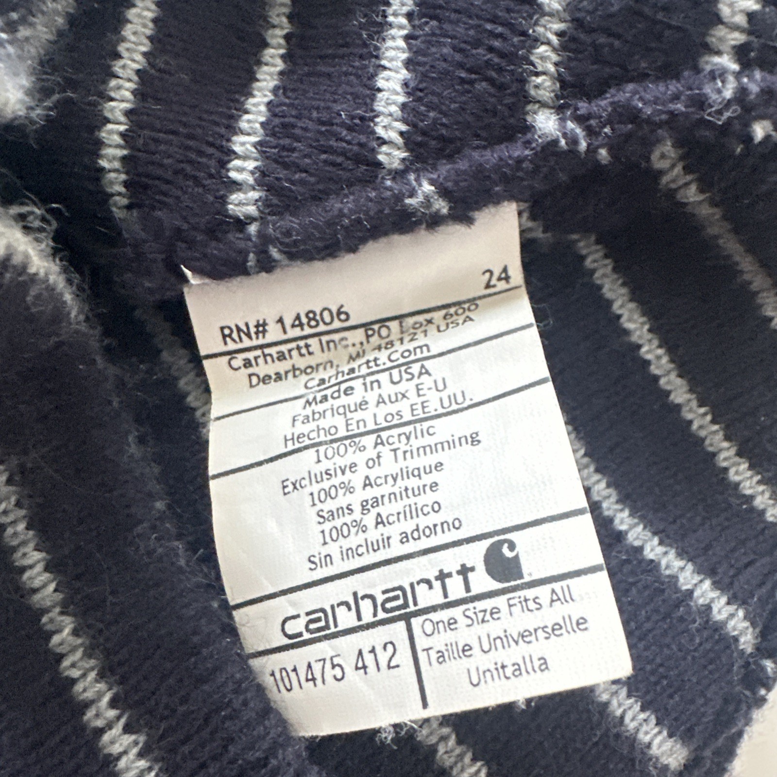 Wrap up in style with the Carhartt Unisex Adult Striped Knit Beanie. This cozy beanie features a classic blue and white striped pattern that adds a splash of color to any outfit. Crafted from soft, lightweight acrylic, it's designed to provide both warmth and comfort during the cooler months of fall, winter, and spring. The beanie is one size fits all, ensuring a comfortable fit for unisex adults, and it boasts a stretch fabric that accommodates various head sizes. Proudly made in the United States, this knit beanie is perfect for those who appreciate durability and a touch of style in their everyday wardrobe.